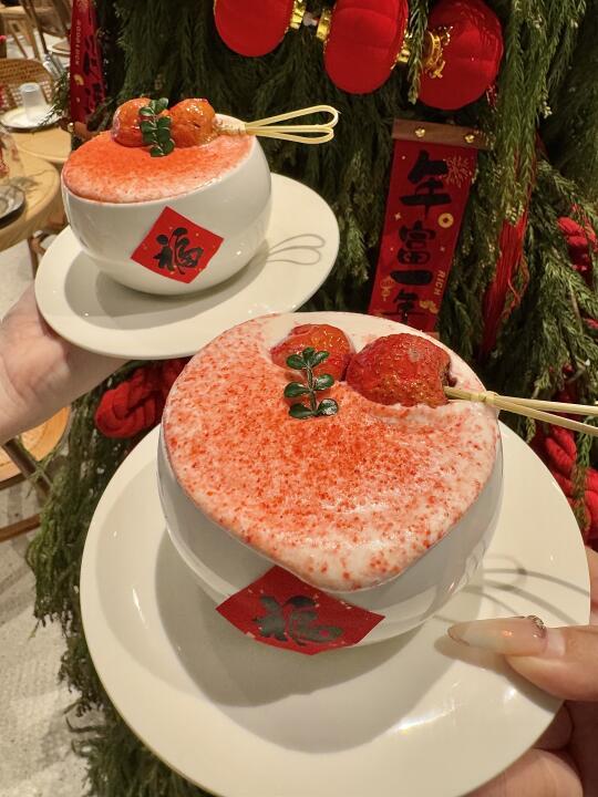 巧克力熔岩!!真的好喝!可可好浓郁!!! 福气草莓dog、糖葫芦舒芙蕾、蝴蝶结草莓🍓可颂…尊的泰可爱噜🥹!!!