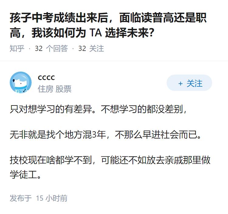 孩子中考成绩出来后,面临读普高还是职高,我该如何为 TA 选择未来?