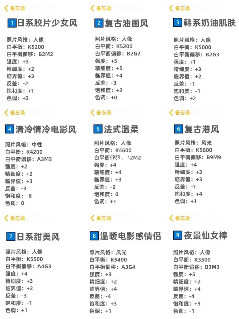 宝子们,今天又来给大家分享摄影干货啦[大笑R] . 😉今天这篇内容,喜欢人像摄影的宝宝,可以好好看看啦~ 我敢保证,错过你可要后悔啦[暗中观察R] . 😉为了满足宝宝们各种各样的拍摄需求。今天rice🍚给大家整理了九种人像摄影参数✅ . 这些都是一些相机原片直出的参数,今天这篇好好理解,学会了你也可以轻松相机原片直出美过后期哦~ 话不多说,重点内容都放在笔记里啦‼️ .