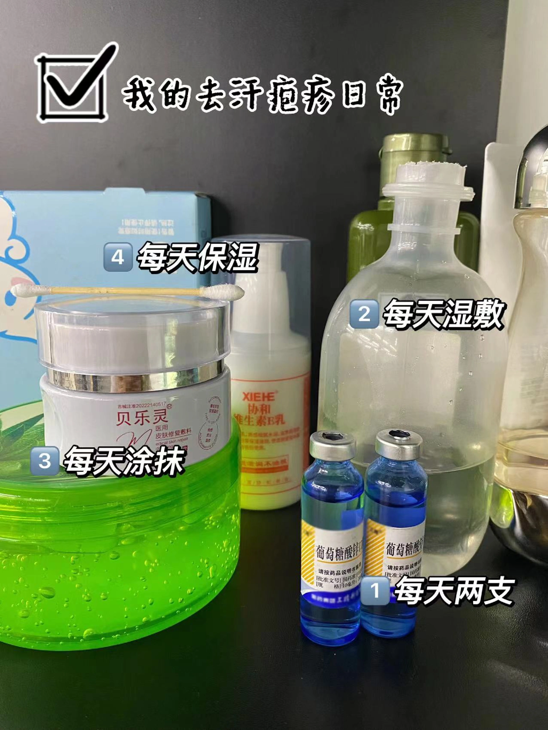①每天洗完手,用冷藏过的盐水打湿化妆棉,在手上长汗疱疹的地方湿敷5min后洗掉,用来帮助深度清洁哦,敷完就不怎么痒了