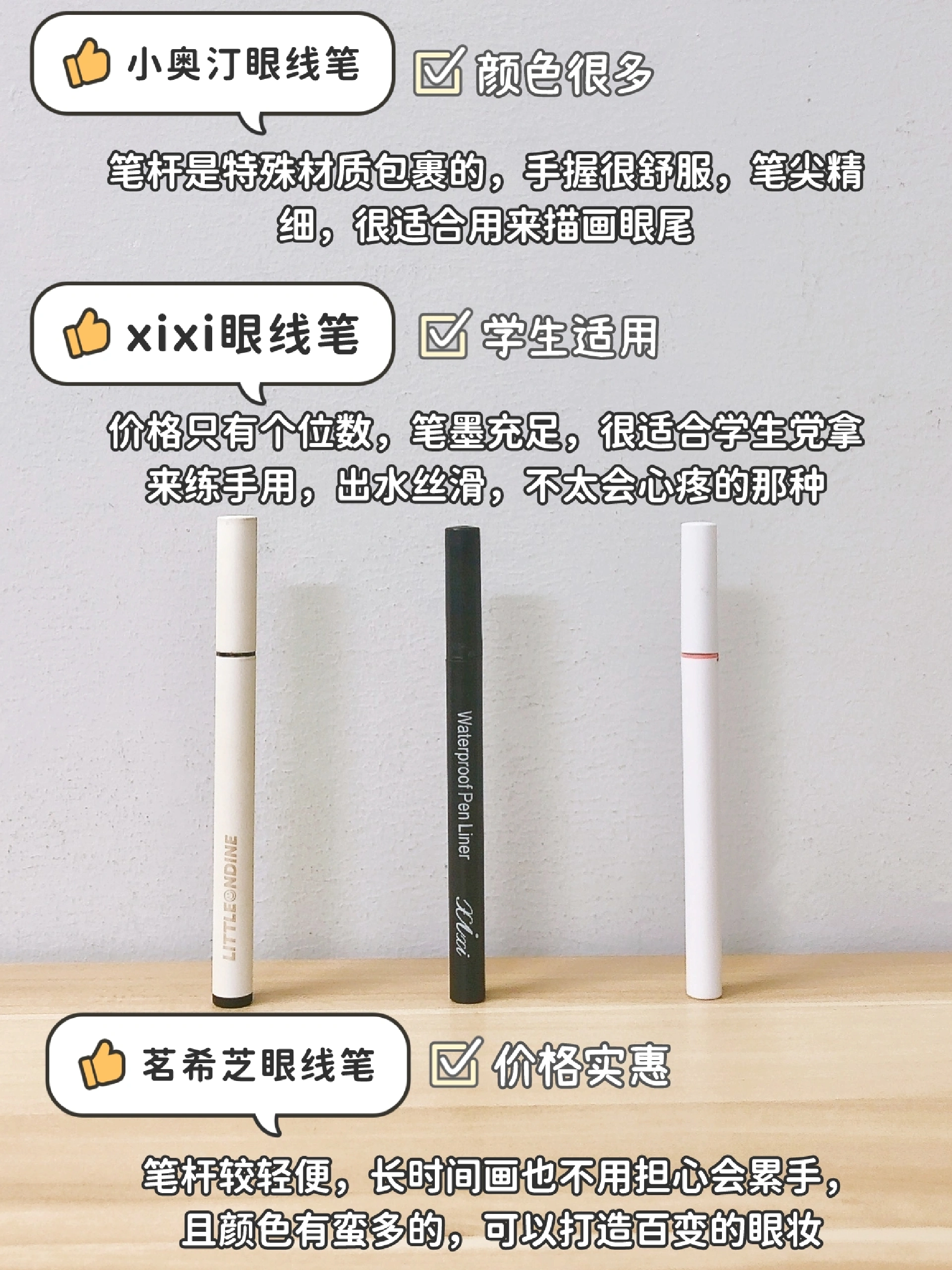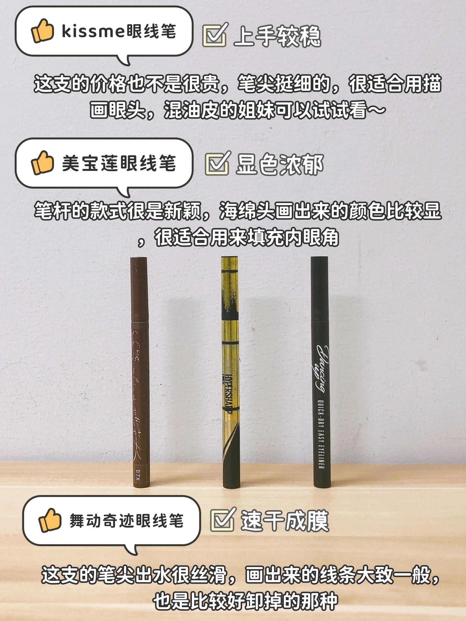 眼线笔挑来挑去,还是这些支好使,用过之后才感觉真的香,现在就是一个囤眼线笔的大动作