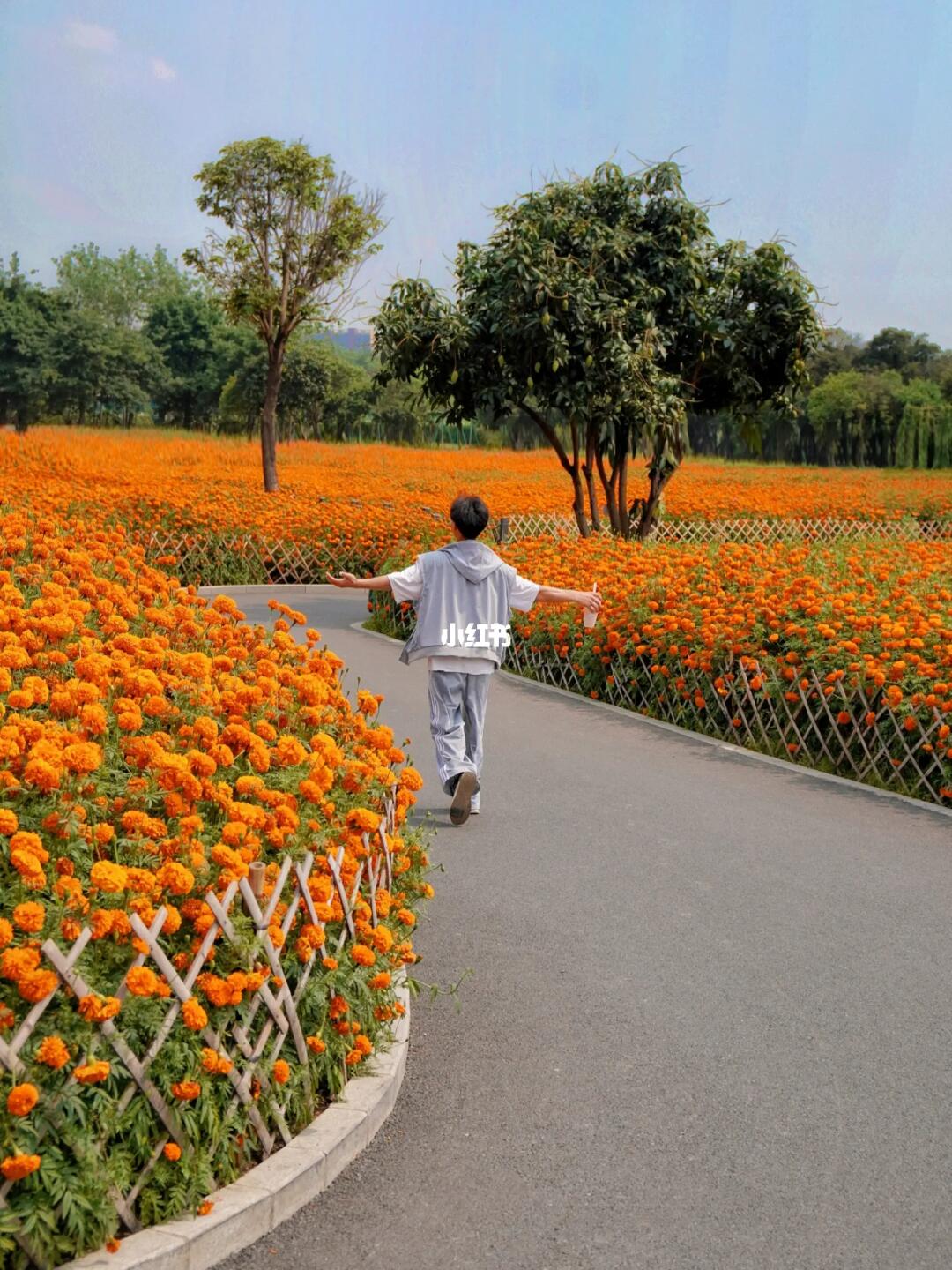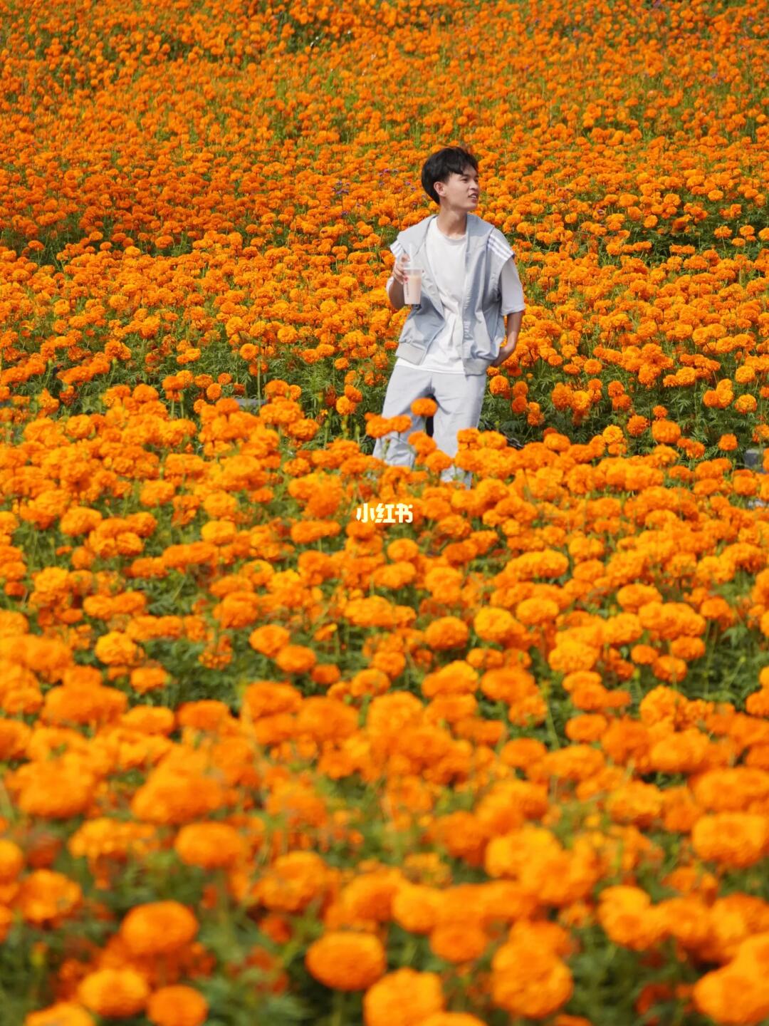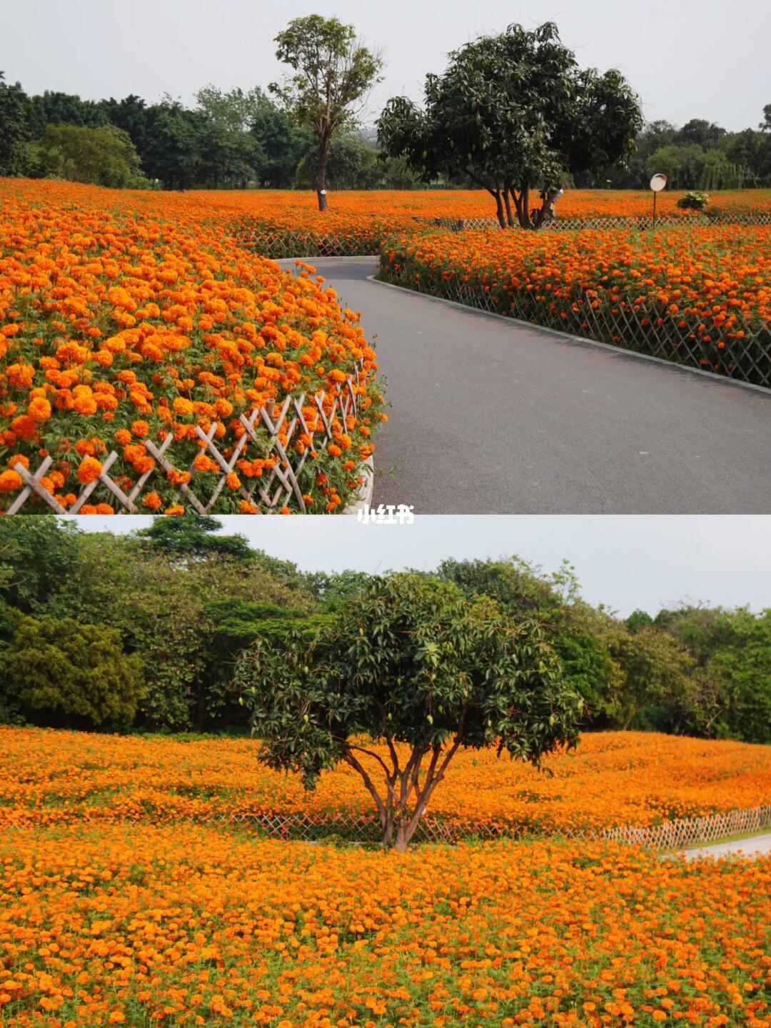 上百亩的万寿菊呈现出了一片金黄色的花海