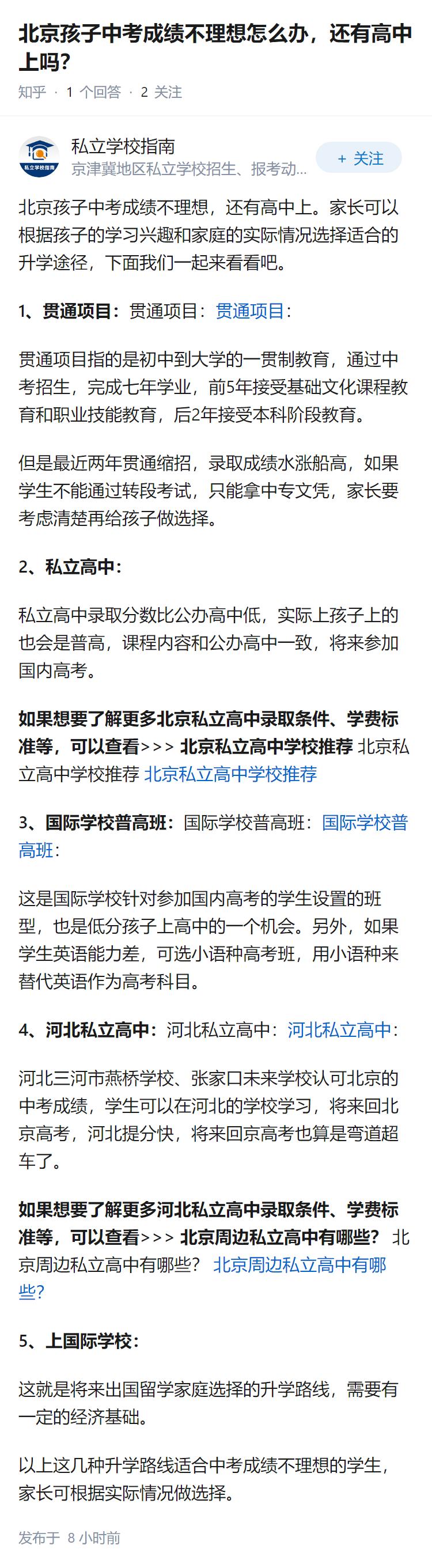 北京孩子中考成绩不理想怎么办,还有高中上吗?