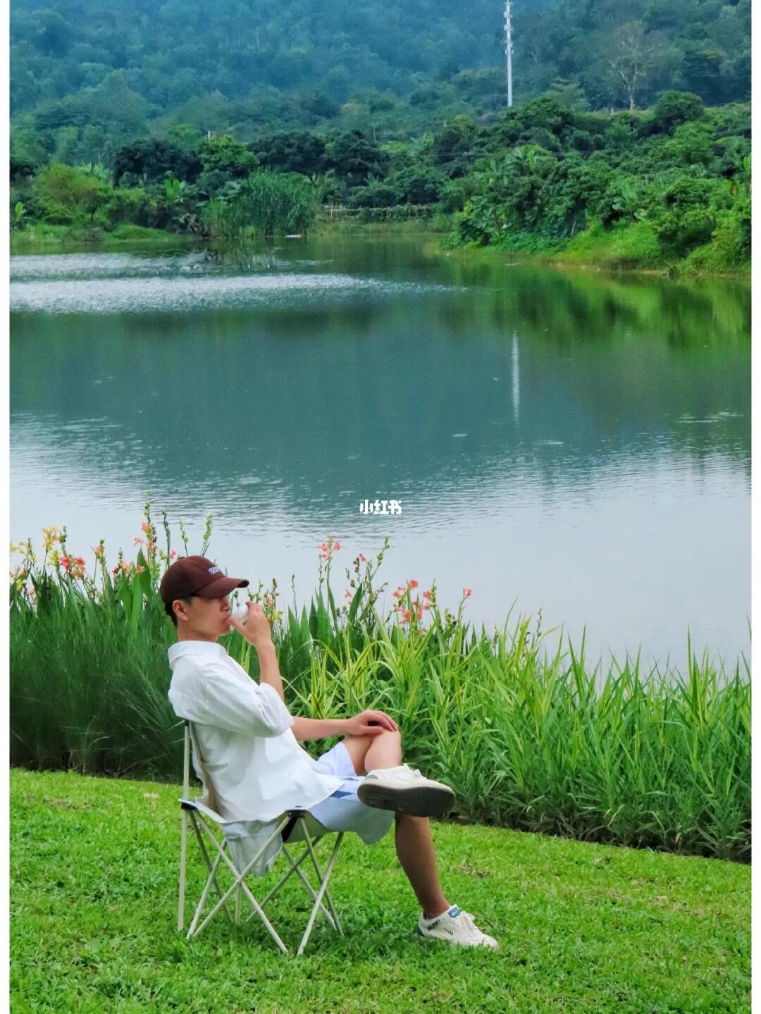 山野间,眼前孩子们戏耍玩水而家长可以悠闲喝茶,钓鱼,很是惬意。