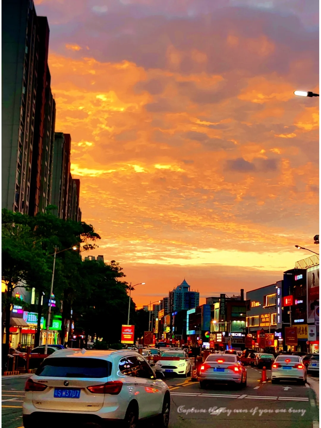 🔹雨天后的晚霞总是这么的讨人喜欢。我的意思是你期待值降低时,总会有意想不到的惊喜。 - 拍摄点:东莞南城区城市风景街