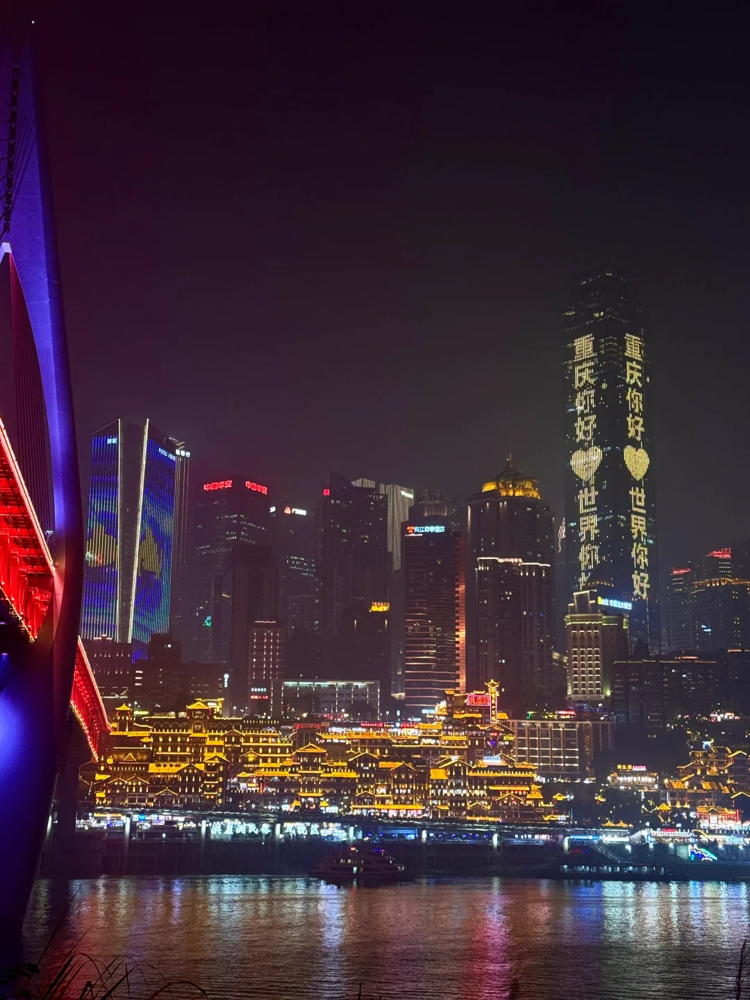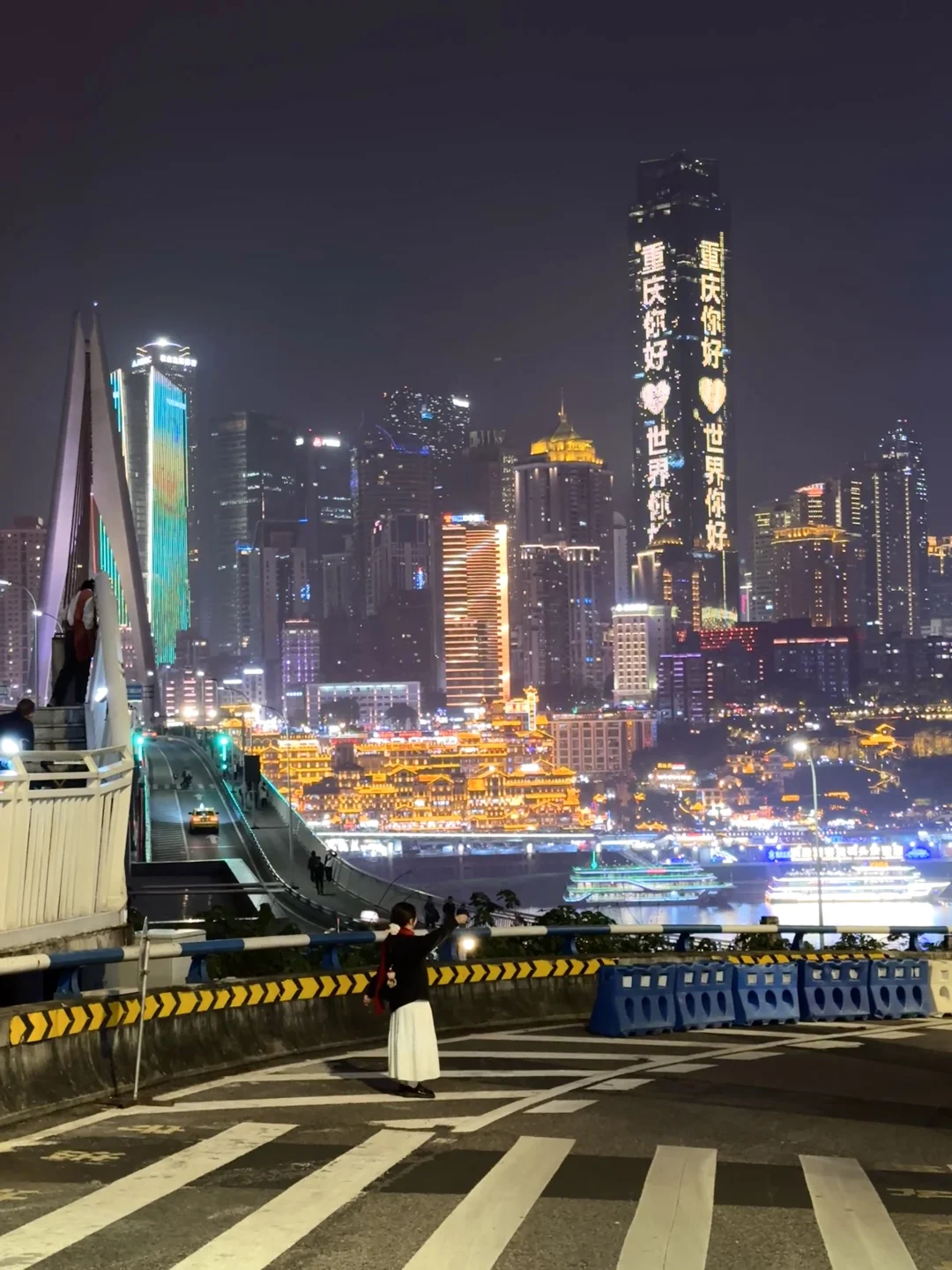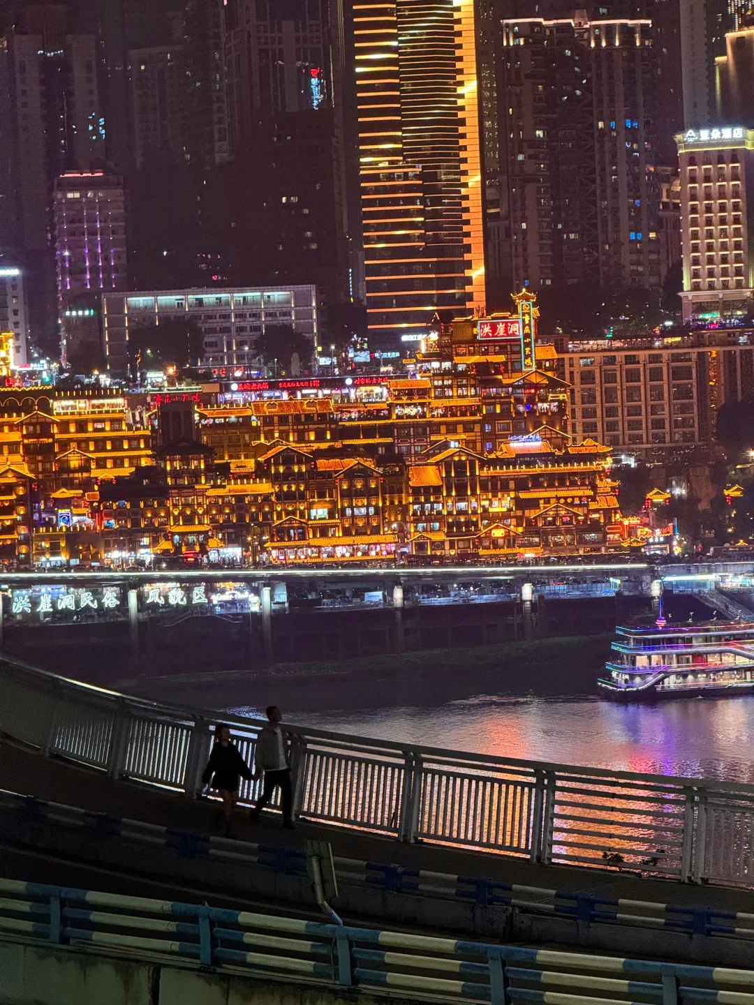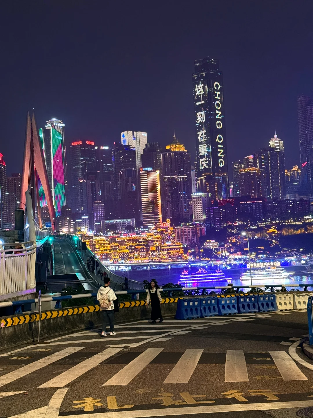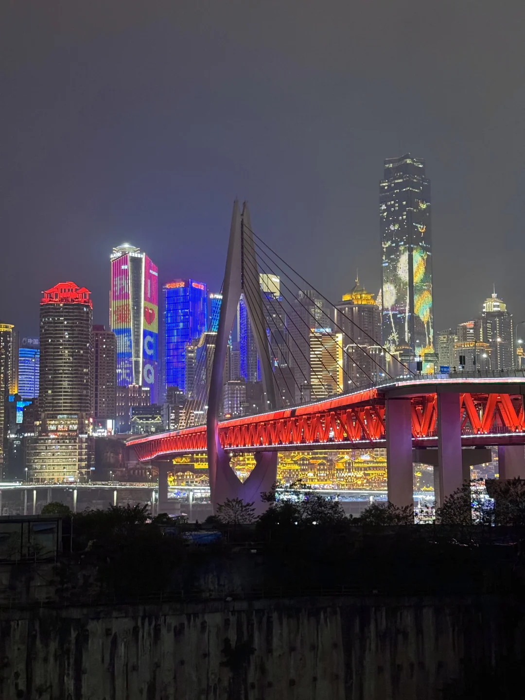万万没想到 洪崖洞对面还隐藏着这么好看的地方 完全没有洪崖洞和解放碑的人挤人 只有路过的人,都会举起手机在那拍🤳 . 特别是晚上灯光亮起的一瞬间,真的好浪漫 唯一的就是天气不好,阴沉沉的,不愧是雾都🌁 不敢想象天气好时的蓝调有多美!!! (ps:有专门的封闭道路可以拍摄,很出片📷)