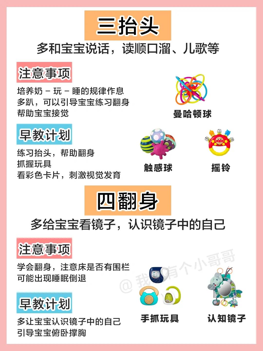 🔸早教计划:练翻身、主动抓握、大动作运动