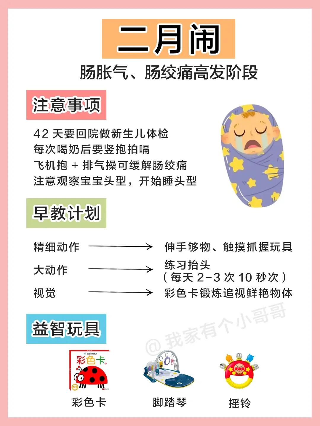 ⚠️注意42天要回院做新生儿体检;每次喝奶后要竖抱拍嗝;飞机抱 ➕排气操可缓解肠绞痛;注意观察宝宝头型,开始睡头型