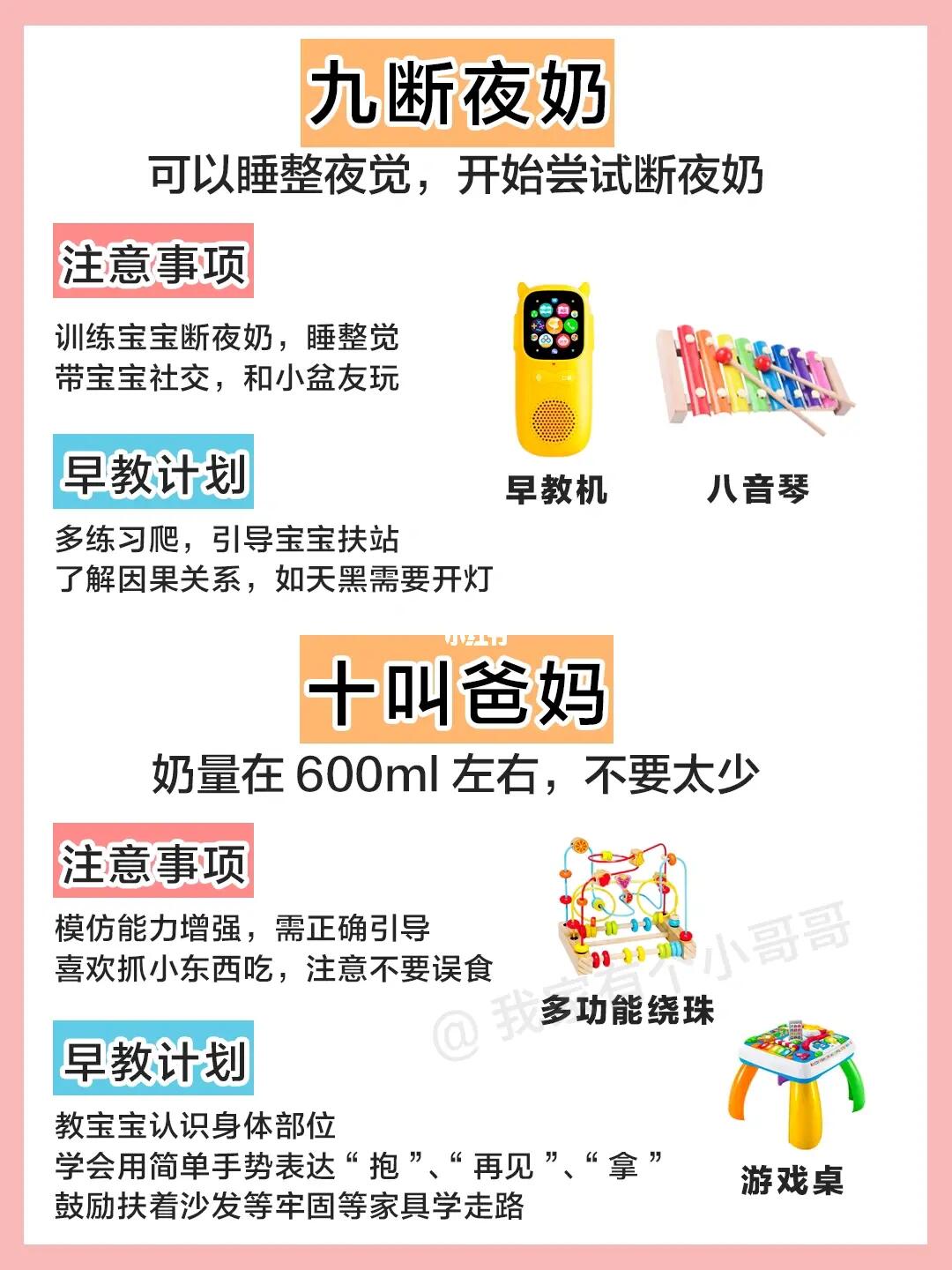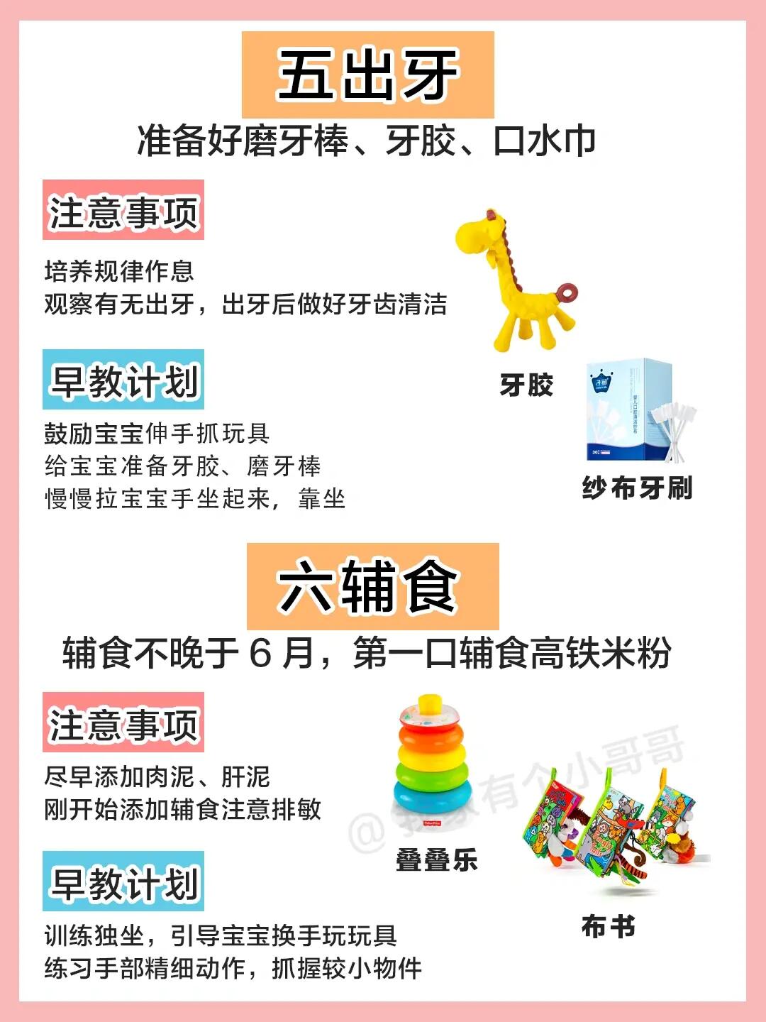 🔸早教重点:提高手眼协调能力、语言能力,做好出牙准备,开始添加辅食。