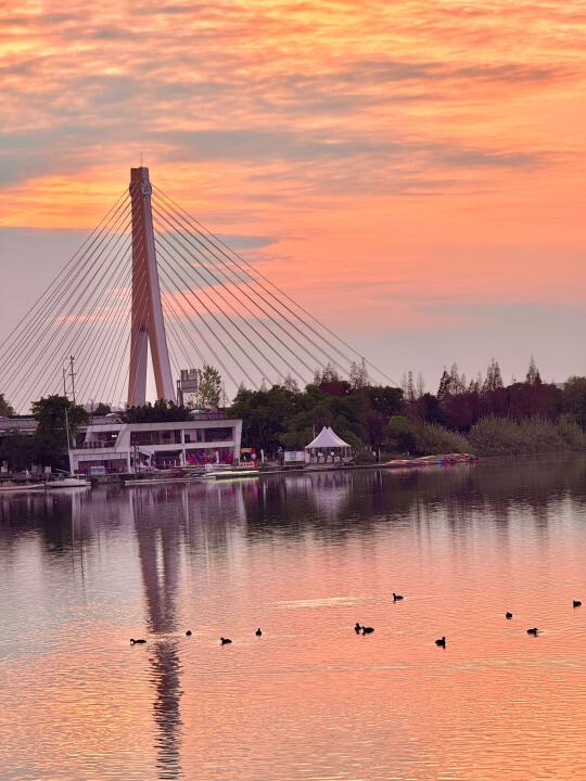 呜呜呜 不枉我五点半就到锦城湖了[皱眉R] 真的好好看🥹还有很多🦆在戏水