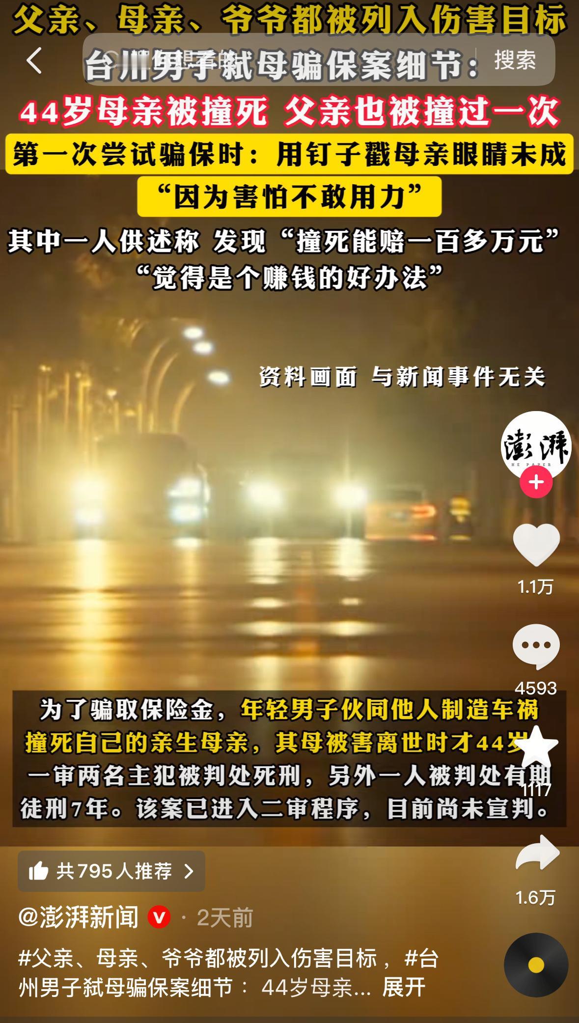 刘震云说:“世界上最坏的就是人,老鼠再不好,就是偷个东西吃;猫再不忠,最多就是离开你家;虎和狼再凶残,也不会餐食同类。但是,人却是真的害人,虎吃人易躲,人吃人难防,明枪易躲,暗箭难防”。 浙江台州男子伙同他人制造车祸杀母骗保事件充分显示了人性的恶。为了钱可以把自己的母亲撞死。而且不只一次,之前为骗保就撞过一次,还用树枝戳母亲的眼睛。很好奇是怎样的家庭环境可以教育出这样子的人。 子不教父之过,生下孩子如果不去教育他,他不仅会危害社会,自己也可能会命丧他手。很多人初为人母,最大的愿望就是希望自己的孩子好好读书,考上清华北大。但是却忽略了一个最容易达成却非常重要的目标,就是成为一个好人。孩子平庸,父母可以颐养天年。孩子道德败坏,父母可能痛苦一生,下半辈子都在为孩子闯的祸收尾。台州杀母案不是个例,之前就发生过北大学生杀母案。生下孩子不教育就等于给自己生下一个仇人。当很多父母在为孩子打拼物质财富时,却忽略了孩子关键成长期。辛辛苦苦打工六年攒下的钱,还不够他一天挥霍。如果父母在小孩子小学六年期间放下工作,陪伴教育他六年,小孩子就会成长为品德端正的人。其他能力再平凡,至少家庭没有祸害。如果其他方面再优秀一点,将来他一年创造的价值可能比家长六年创造的都更多。孰重孰轻家长们真的要好好掂量一下。
