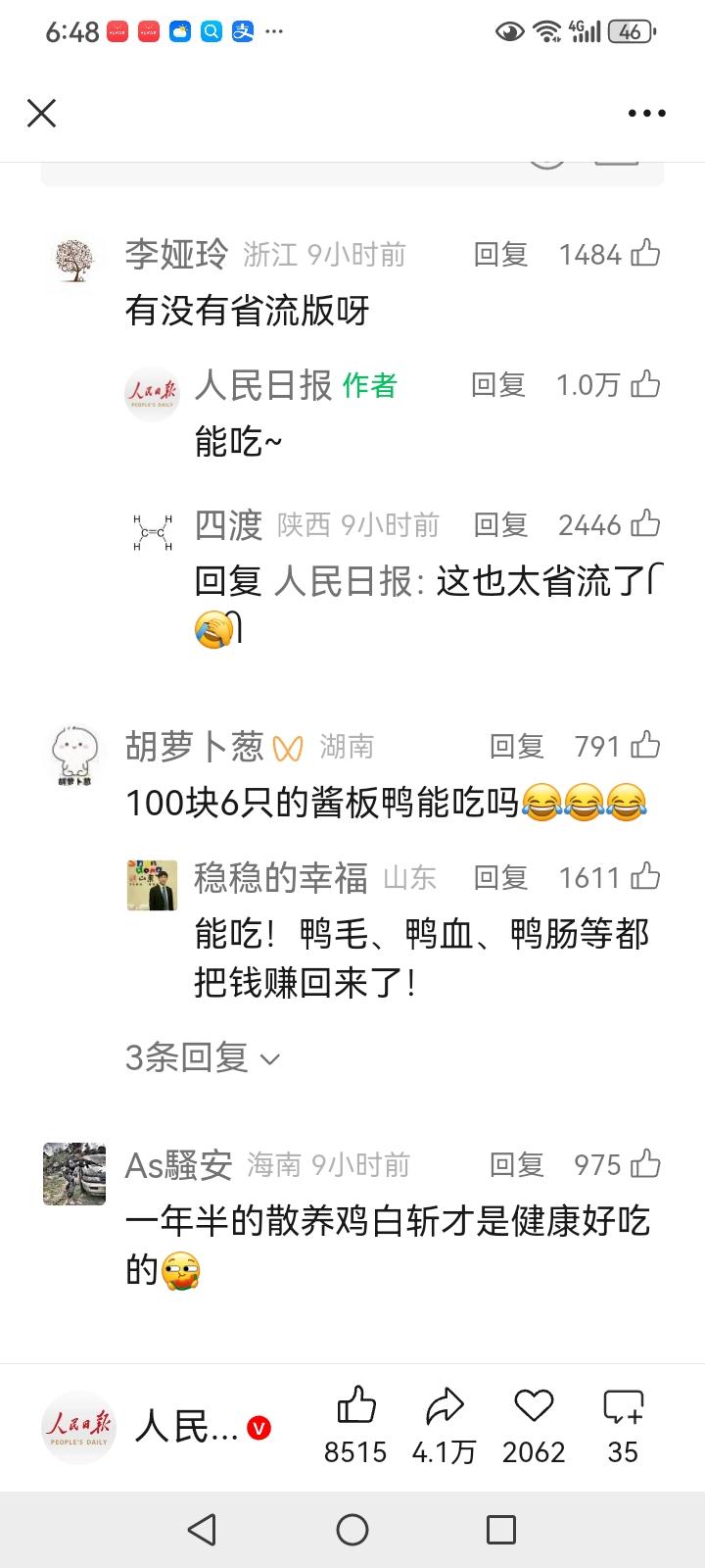 人民日报告诉你:20元一只的烤鸡到底能不能吃?真相让人大吃一惊! 今天在超市熟食区转悠,看到明晃晃的招牌上写着“烤鸡特价20元/只”,我差点把眼镜跌碎!这年头,20块钱连杯像样的奶茶都买不到,居然能买整只鸡?该不会是商家搞错了小数点吧?😂 说实话,我当时的内心戏可丰富了:这鸡是不是营养不良?还是说超市在做慈善? 结果你猜怎么着?人民日报都亲自发文给咱们吃定心丸了!原来这些20元的烤鸡不仅能吃,而且来路正着呢!(详见附图) 现在的养殖技术那叫一个先进,全链条自动化管理,成本大大降低。商家又是批量采购,薄利多销。再说了,这些烤鸡通常选用的是40天左右出栏的白羽鸡,生长周期短,成本自然可控。就像专家说的:“便宜不等于劣质,这是现代农业发展的成果!” 不过贴心如我还是要提醒大家:尽量选大型正规超市,看好生产日期,观察鸡肉色泽是否正常。要是看到烤鸡颜色发暗或者有异味,再便宜也别往购物车里放啊! 最后分享个冷知识:其实这些烤鸡往往是超市的“引流神器”,就是专门用超低价吸引咱们进店的。商家精明着呢,等你买了烤鸡,顺带手不就带瓶酱油拎桶油了嘛! 所以啊,下次见到20元的烤鸡,放心大胆地入手!今晚我就准备左手鸡腿右手手机,边啃边刷剧,享受这性价比爆表的美味。