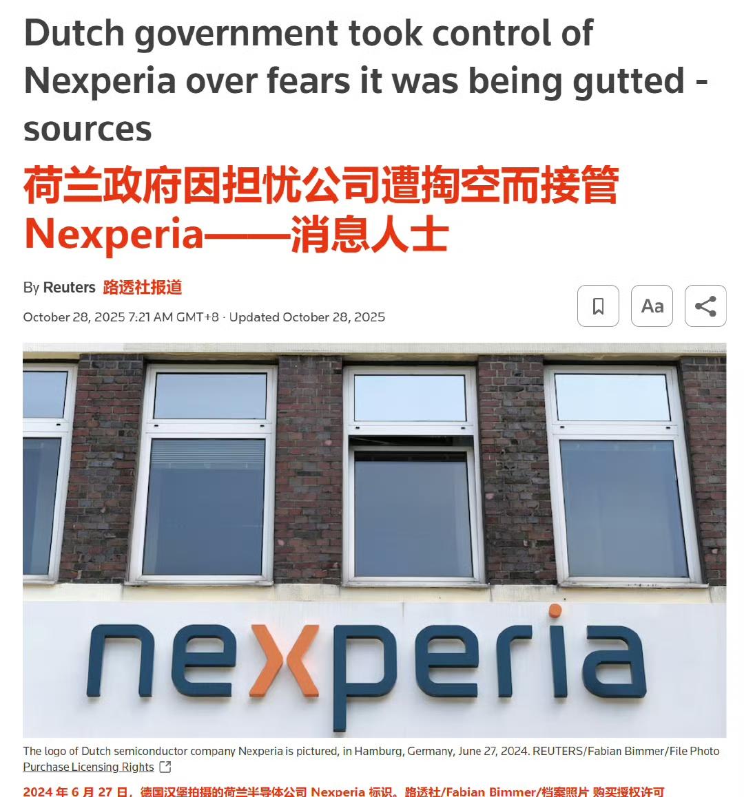 荷兰政府就抢劫中国安世半导体(Nexperia)给出新的狡辩,他们说是害怕公司被“掏空”。 路透社报道,四位熟悉荷兰政府想法的海牙消息人士周一表示,荷兰政府 9 月决定“接管”芯片制造商 Nexperia,是由于担心该公司前首席执行官正在拆除其欧洲业务并将生产转移至中国。(跟之前说的又不一样了) 中国与荷兰围绕安世半导体(Nexperia)持续一个月的僵局,已导致欧洲、美国和日本的汽车制造商警告可能因芯片短缺出现生产问题(本田的墨西哥工厂已经停产)。尽管安世生产的芯片技术较为基础,但被大量用于汽车电子系统中。 消息人士称,荷兰政府相信能够与中国协商达成一项解决方案,使公司恢复至荷中合资的统一架构。