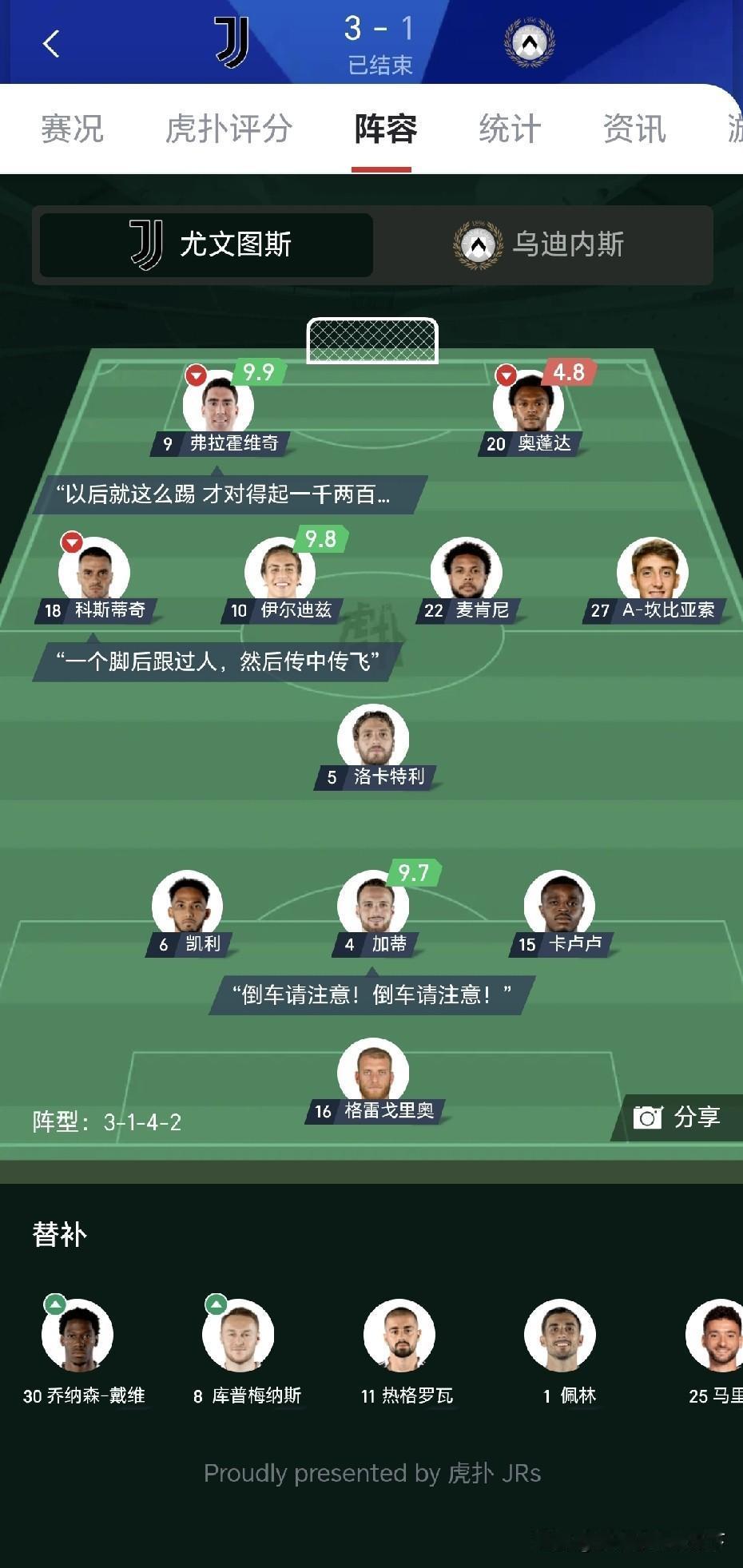 真的是换帅如换刀啊,尤文之前四场不进球,这场一场进了仨…… 从尤文这场的表现看,前面的几场图多尔绝对被球员做局了,精神状态比赛态度完全两码事。同理是不是斯洛特下课,卧铺也能赢球? 说真的,尤文能赢,真是个人能力能稍微高点,全场进攻端毫无配合,没有无球跑动为其他队友拉开空当,全是等球,带球直面防守的摆脱,踢的别扭不说,而且很累。刚看了水晶宫和利记的比赛,看看水晶宫那球配合,三个人就轻松撕开防守,有跑位,有传出精妙传球,这就是进攻体系,每个人都知道干什么。尤文的进攻,老觉得有攻势,每个人也很拼,也有射门,但就是形不成威胁,踢的跟没头苍蝇一样,还是教练进攻体系问题。