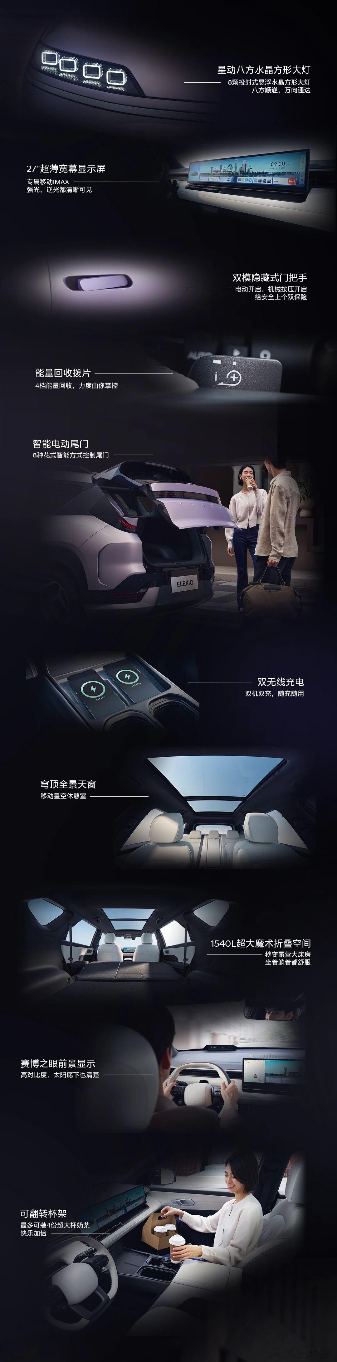 内饰方面,中控屏与副驾娱乐屏组成的27英寸4K双联屏设计,内置高通8295P芯片。车内座椅采用仿麂皮进行包裹,前排座椅支持加热和通风功能,车辆主驾驶席配备主动侧翼支撑,后排椅背支持28°调整范围,后排座椅可按4/6比例放倒,将后备厢容积从506L扩展至1540L。