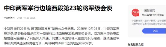 中印两国同时宣布了!   2025年10月29日,中国国防部宣布中印两军在莫尔多会晤点印方一侧成功举行了边境西段第23轮将军级会谈,双方同意继续通过军事和外交渠道保持沟通,共同维护边境地区的和平安宁。   “将军级会谈”的分量不轻,这是2020年以来双方第23轮此类对话,早已形成成熟的沟通机制。能让高层军方代表坐下来,本身就是和平的积极信号。   这可不是随便找俩参谋碰个头那么简单,将军级代表手里握着实际决策权,能直接对接两国军方核心诉求,谈的都是边境管控的实打实问题。   从2020年到现在,平均下来差不多俩月就谈一回,这套机制早成了双方管控分歧的“安全阀门”。   这次会谈选在了莫尔多会晤点的印方一侧,10月25日开的会,29日两国一起官宣。中国国防部的声明里写得清楚,双方就西段管控问题聊得挺深入。印度外交部那边也发了声明,说会用现有机制解决实地问题,维持边境稳定。   双方都没绕弯子,直接把“两国领导人重要共识”摆到了台面上。这态度很明确,边境问题得跟着顶层设计走,不能任由局部摩擦发酵。清华大学的钱峰研究员就说了,这种军事加外交的双轨沟通,给边境稳定上了层制度保险。   想想今年五六月份那阵儿,局势还挺紧张。印度当时往藏南增派了两个山地师,兵力超两万,还跟中方巡逻队在边境凑得挺近,双方距离一度不到百米。那会儿不少人都担心冲突升级,还好沟通渠道没断。   接着8月份,中印边界问题特别代表在新德里开了第24次会晤,一口气敲定10点共识。这里面藏着关键信息,不光西段有将军级会谈,东段和中段也打算搞同样的机制,还准备设划界专家小组,琢磨着成熟地段的划界谈判。   这次第23轮会谈,其实就是在落实8月的共识。双方没扯虚的,直接明确接下来还要保持对话。这种循序渐进的节奏,比喊口号管用多了。毕竟中印都是大国,边境线那么长,磕磕碰碰难免,但真闹起来对谁都没好处。   解放军在边境早把保障做足了,班公湖那边建了重型补给桥,15分钟就能送齐物资,还有AI监控系统能秒速锁定越境目标。但这些硬实力不是为了挑事,是为了在对话时更有底气。印度那边也该清楚,靠增兵强推项目没用,藏南民众的抗议就是最实在的态度。   现在这局面挺好,军方坐下来把话说开,外交层面再跟进落实。没有剑拔弩张的狠话,全是解决问题的实在动作。老百姓最盼的就是边境安安稳稳,这23轮会谈攒下的默契,就是安宁最靠谱的底气。   来源:中国新闻网 【中印两军举行边境西段第23轮将军级会谈】