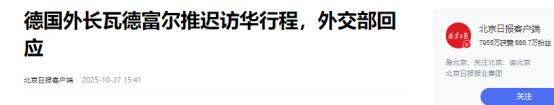 德国外长被“中断”访华之路后,德国国内各界“火力全开”!任何指责中国的行为都是愚蠢的做法!英国《金融时报》称这是默茨政府的超级外交灾难!   当德国外长取消访华行程时,德媒还披露称,德国外长瓦德富尔访华行程之所以取消,根本性原因是中国要求德国外长先纠正其言论、再访华!而德国外长信口开河之举行正遭到德国朝野的一致批评。   瓦德富尔的离谱言论早就攒了一堆。他在访前接受采访时,把台湾问题当成自家事,宣称要 “自定义一中原则”,甚至放话 “大陆不能以武力改变现状”。   转头他又摆起教师爷架子,敦促中国放宽稀土和半导体出口,却对西方围堵中国芯片产业的事绝口不提。   更矛盾的是,他一边跟着美国对抗中俄,一边还逼迫中国 “促使俄罗斯停火”,这套双重标准直接踩了中方红线。   德国执政联盟里的社民党先急了,该党外交事务发言人阿迪斯・阿赫梅托维奇直言,临时取消行程不是好兆头。他公开呼吁,德国必须重新思考对华战略,现在比任何时候都需要聚焦对话的外交政策,毕竟全球局势紧张,和中国的直接沟通太重要了。   媒体更是不留情面,《焦点》周刊直接点破,瓦德富尔延续了前任贝尔伯克的说教模式,这种做法既没现实基础,还损害德国利益。   该刊明确表示,德国该在电动汽车等领域向中国学习,而非搞惩罚那一套。《柏林日报》也惋惜,前总理施密特奠定的 “尊重对话” 基础,现在正被意识形态化的政策毁掉。   企业界的不满藏都藏不住,大家都清楚,瓦德富尔本是带着车企和稀土进口商的诉求访华的。荷兰对安世半导体动手后,中国反制已让欧洲汽车工业面临停产,德国车企损失最惨重。   今年前八个月,德国和中国的贸易额已经冲到 1634 亿欧元,刚好多过对美贸易的 1628 亿欧元,中国重新成了德国最大贸易伙伴。这种节骨眼上搞砸访问,企业们的供应链危机直接雪上加霜。   英国《金融时报》看得更透彻。该报直言这是默茨政府的超级外交灾难。默茨正努力重振停滞三年的德国经济,一直想和中方领导人会面谈合作,结果外长把铺垫行程搞黄了,整个计划全被打乱。   德国批发和外贸协会主席迪尔克・扬杜拉早说过,高关税只会损害各方利益。现在瓦德富尔用言论挑衅中国,本质上是让企业为政客的傲慢买单。越来越多德国人看清,指责中国的行为有多愚蠢,毕竟中德在汽车、机械等领域的产业融合早已深度绑定,互信才是唯一出路。   来源:北京日报【德国外长瓦德富尔推迟访华行程,外交部回应】
