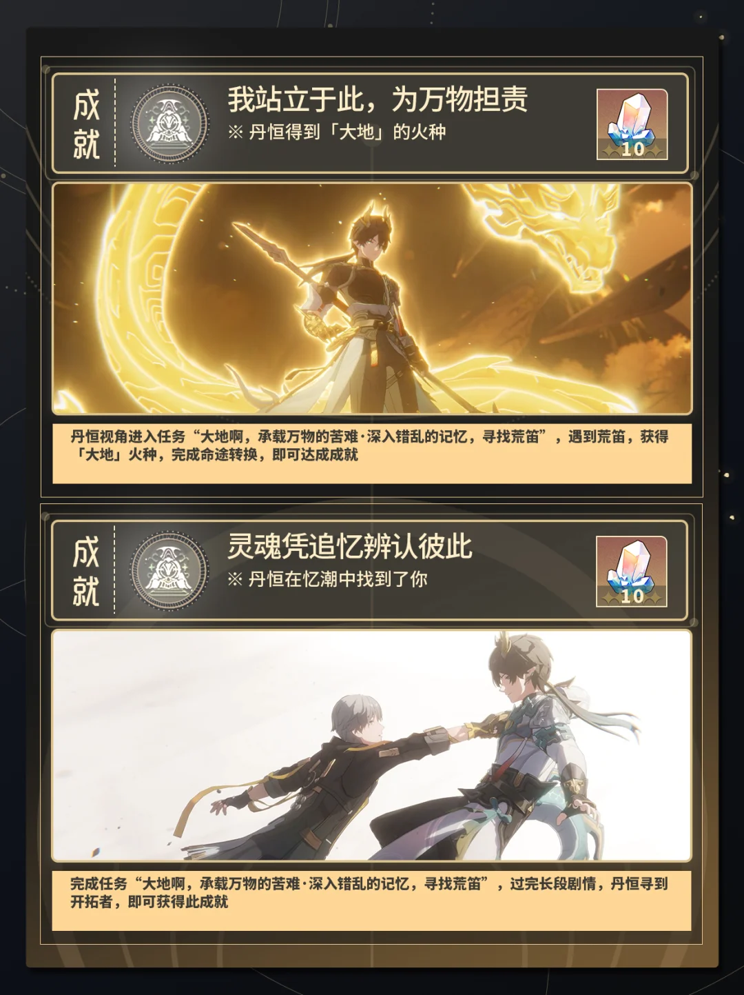 完成任务“大地啊,承载万物的苦难·深入错乱的记忆,寻找荒笛”,过完长段剧情,丹恒寻到开拓者,即可获得此成就