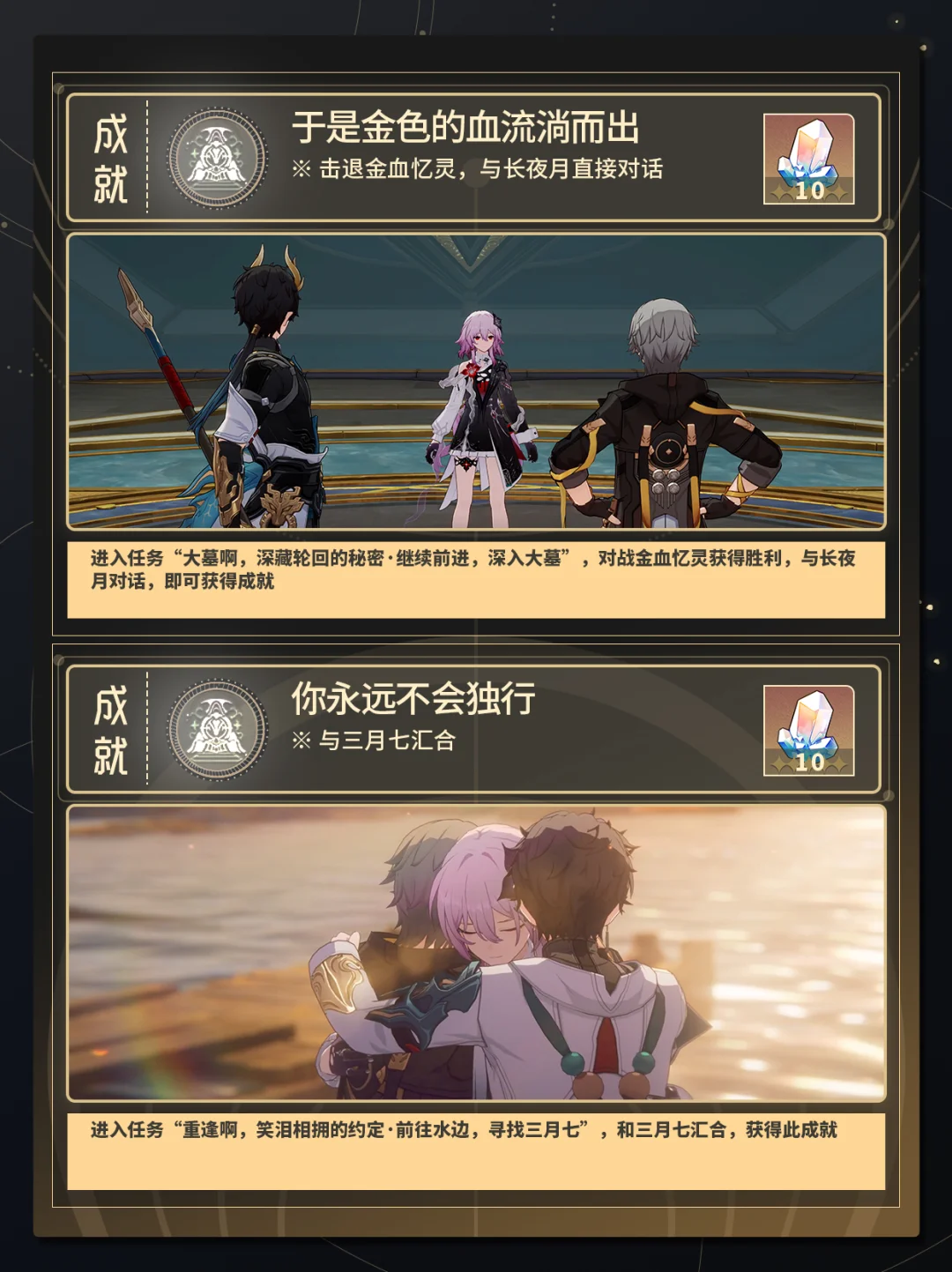 进入任务“重逢啊,笑泪相拥的约定·前往水边,寻找三月七”,和三月七汇合,获得此成就