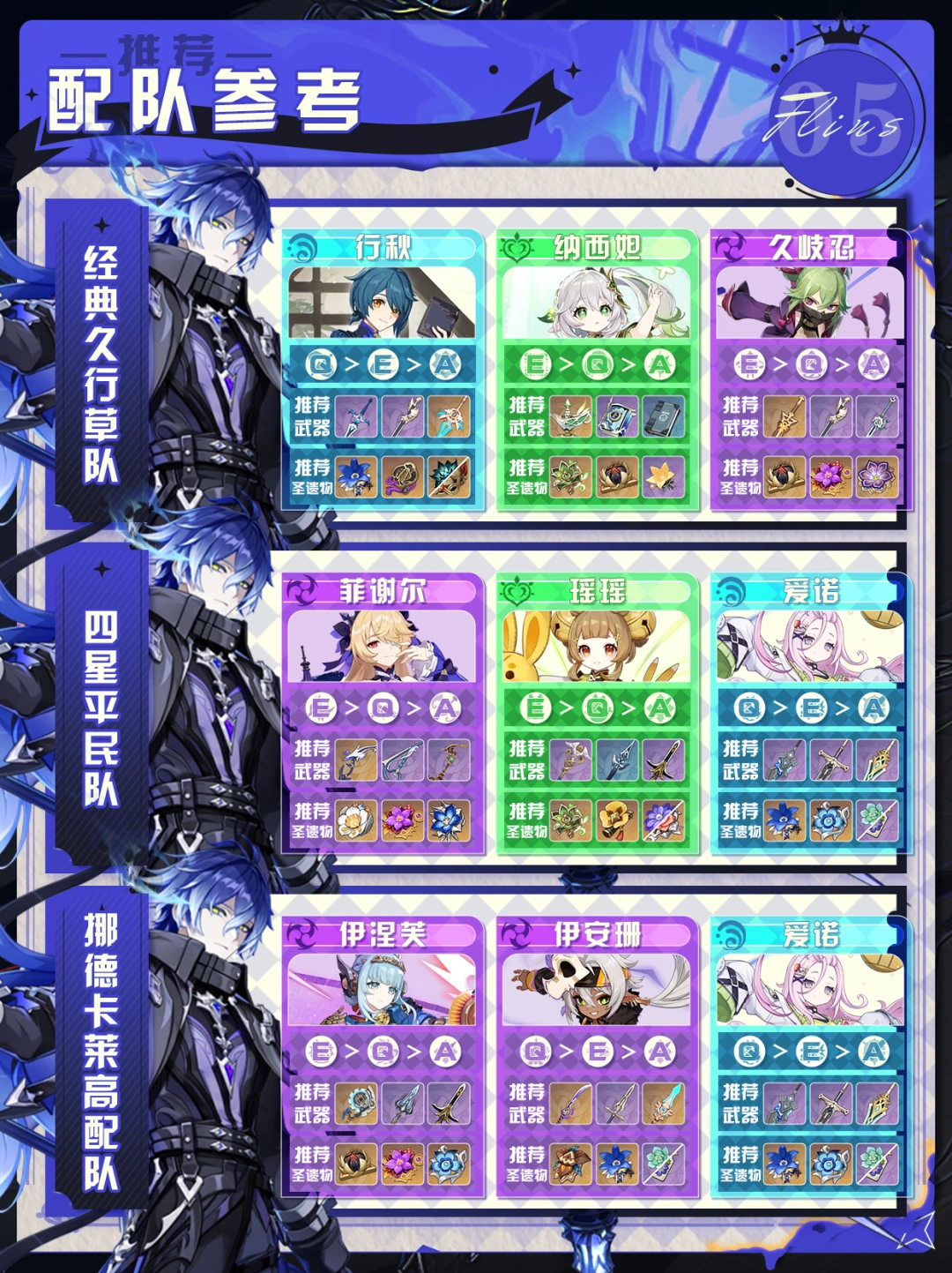 经典久行草队:菲林斯+行秋+纳西妲+久岐忍