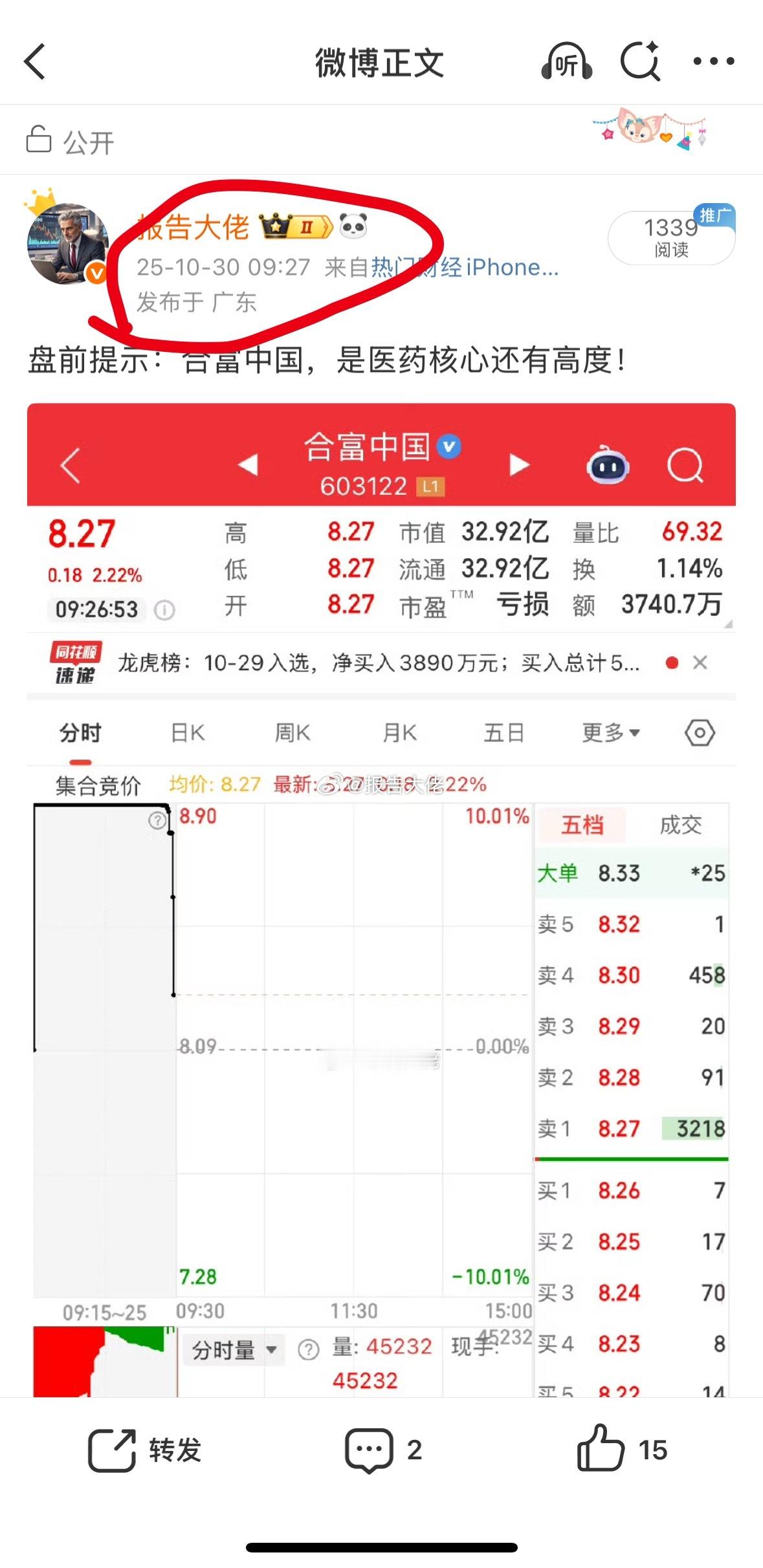 漂亮!盘前提示,合富成功上板!恭喜跟上的朋友!