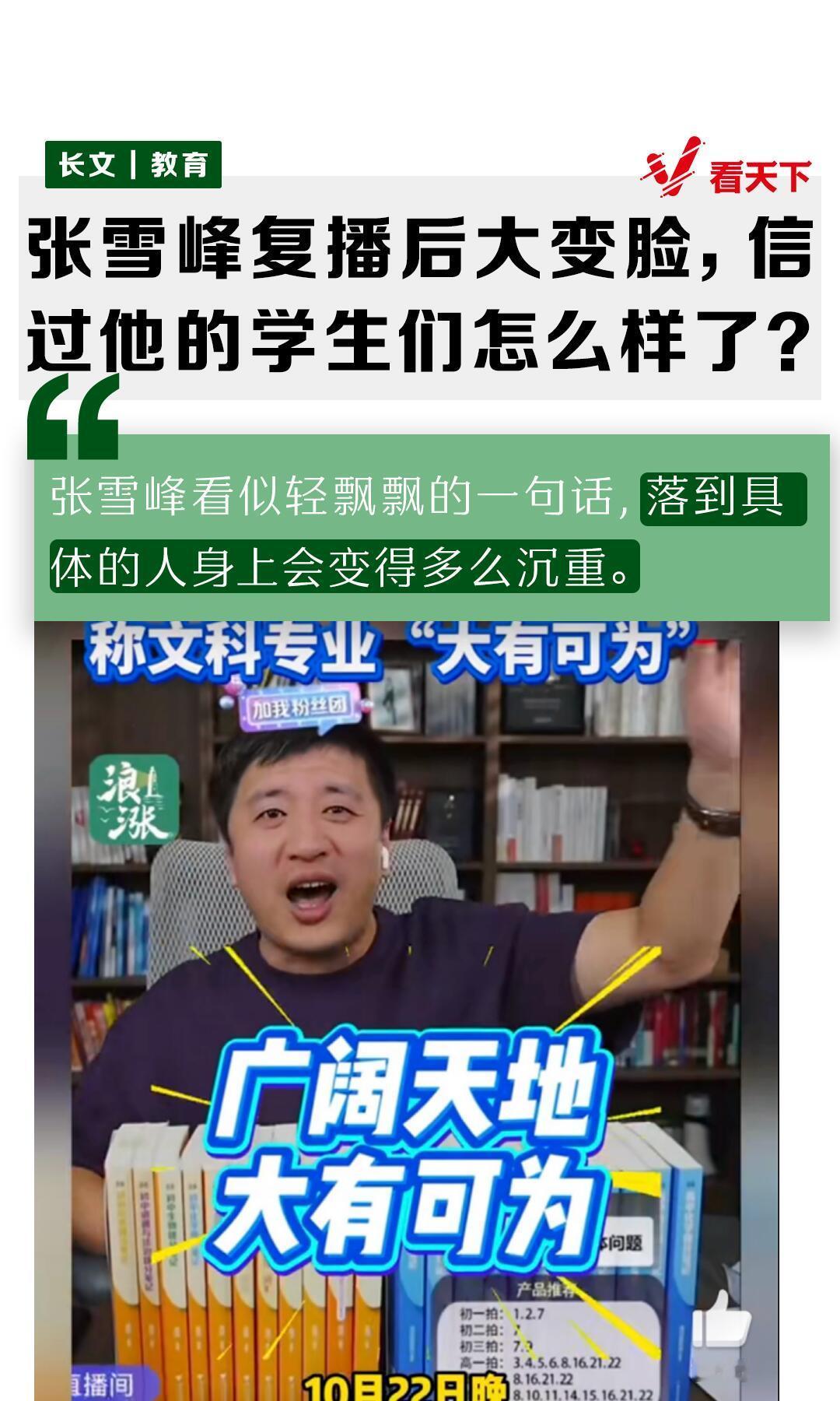 张雪峰这回复播,态度直接180度大转弯。之前还把文科贬成"服务业",现在居然改口说"广阔天地,大有可为"。网友调侃他变脸比翻书还快,但那些真被他影响过的学生,可一点都笑不出来。 有个叫刘宇的土木专业学生,最近刷到五年前的视频,心里特别不是滋味。那时候张雪峰还在极力推荐土木工程,说就业前景好。刘宇就是信了这话才报的专业。结果等他入学后,张雪峰对土木的态度完全反转,开始各种嘲讽。而现实是,土木行业确实在下行,50多所高校都撤销了这个专业。刘宇毕业时找工作四处碰壁,最后只能去考研。 说实话,张雪峰这种网红导师,随便一句话可能就改变别人一辈子。他可以说变就变,但那些听了他建议的学生,却要承担实际后果。专业选择不是儿戏,不能光看眼前热度。 现在信息这么发达,选专业真不能只听网红瞎忽悠。得结合自己的兴趣,多查资料,看看行业真实发展。毕竟人生是自己的,别人随口一句话,买单的却是你。