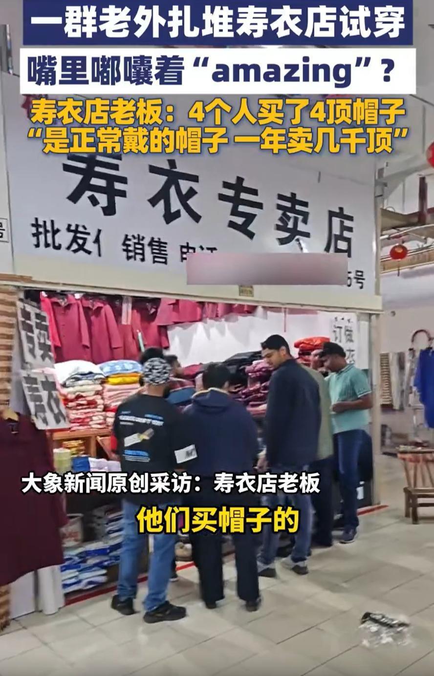 这事儿真是让人哭笑不得。江苏镇江一家寿衣店,突然涌进来一群外国游客,对着寿衣赞不绝口,还有人直接拿起来往身上比划,嘴里还夸“太美了”。把路人和老板都看傻了。 老板赶紧上去拦着,连说带比划地解释这是寿衣,不能试穿。可老外完全会错意,以为老板嫌价低,还比划着愿意加钱买。最后老板实在没辙,只卖给他们几顶普通帽子打发走了。后来才弄明白,这些老外是把精致的寿衣当成传统唐装了,纯粹是文化差异闹的乌龙。 说实话,这事儿真没必要上纲上线。咱们中国人对寿衣有忌讳,可老外压根没这概念,他们就是被精美的刺绣和丝绸工艺吸引了。就像咱们去国外也可能不小心触犯别人的禁忌一样,关键得看是不是故意的。 最该夸的是这位老板。明明可以装糊涂赚一笔,却坚持解释、婉拒销售,这种诚信真难得。而且换个角度想,连外国人都被咱的传统工艺吸引,说明这些东西确实有魅力。 这种文化碰撞其实是个沟通的机会。只要双方都带着善意,误会总能解开。下次咱要是遇到类似情况,也别急着生气,多点耐心解释就好。毕竟,尊重是互相的。