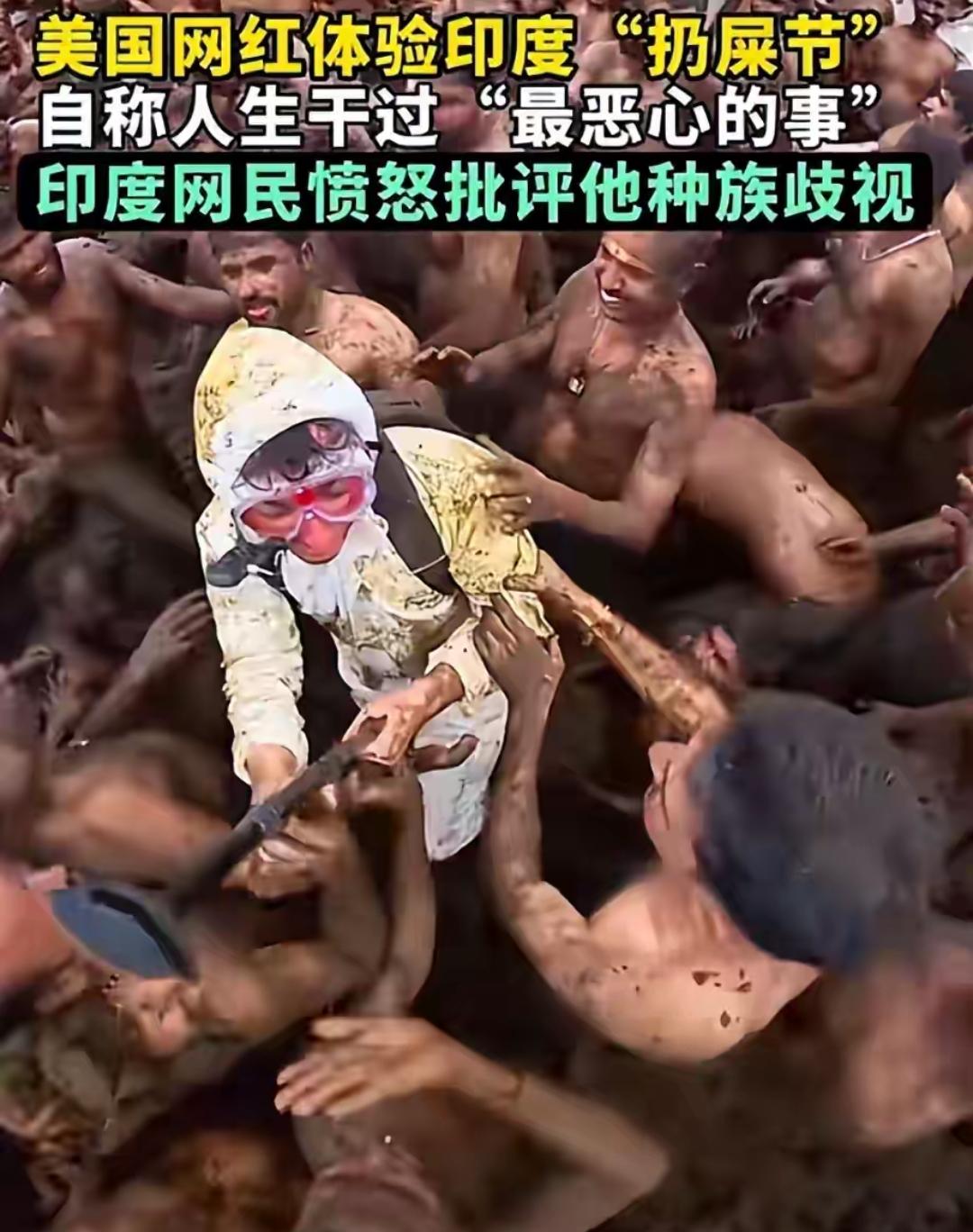 美国博主穿防护服拍印度“扔粪节”被按进粪堆,真不是文化冲突,是没教养的流量投机! 人家眼里神圣的祈福仪式,到他那成了“一生最恶心的经历”,连干牛粪和新鲜粪便都分不清就乱喷。 打着体验文化的旗号博眼球,用偏见当卖点,被怼了还甩锅“不是种族歧视”,这种双重标准才最让人不齿。 文化没有高低,差异不该是嘲笑的资本。 你可以不理解,但不能带着傲慢去冒犯别人的信仰,更别把“抹黑”当成流量密码。 尊重从来都是相互的,想靠贬低别人涨粉,迟早会翻车。 你觉得遇到这种冒犯文化的博主,该直接抵制还是给一次道歉机会?来评论区聊聊~
