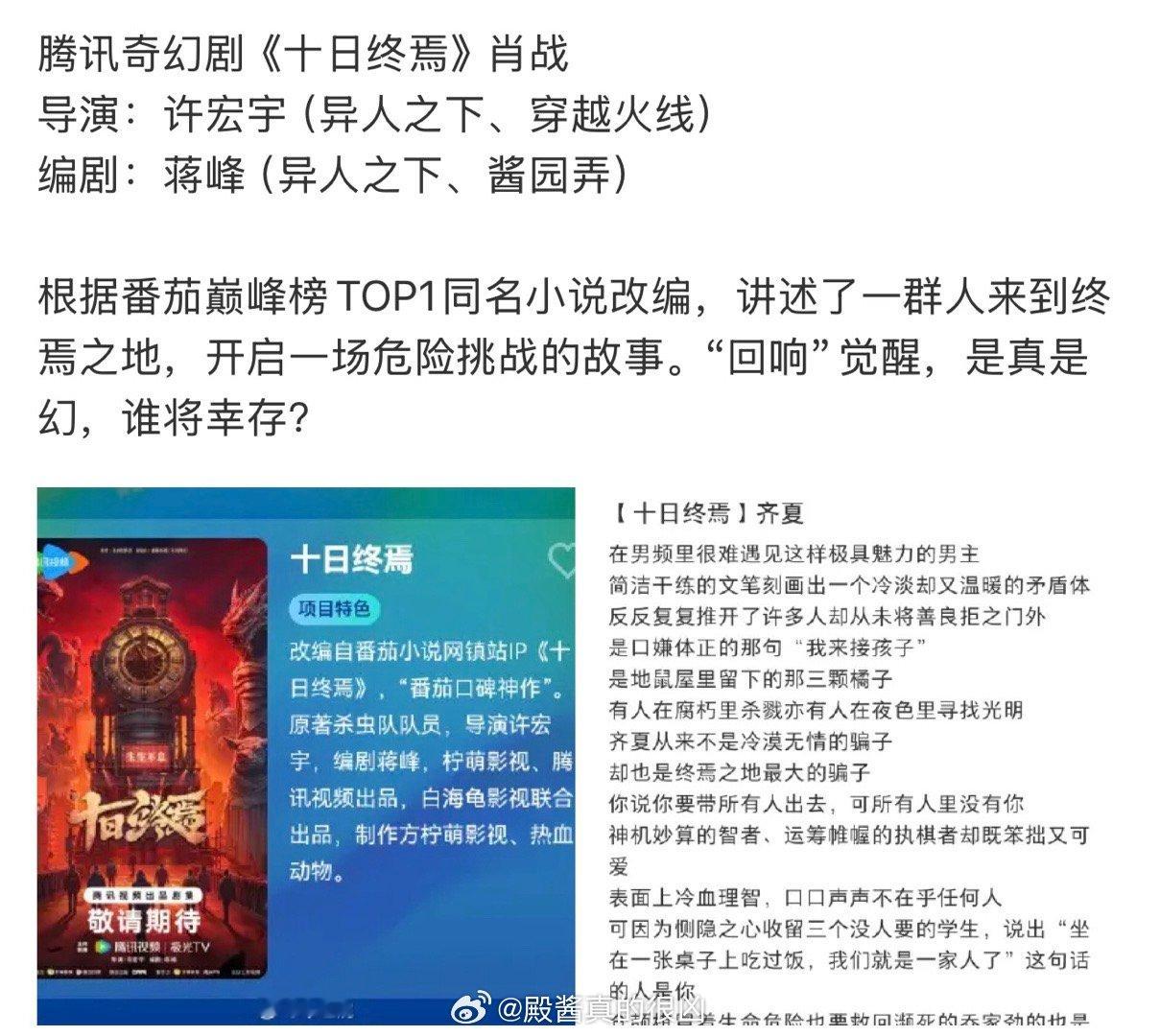 小红薯🍠上有1000万人在看肖战十日终焉这个瓜[泪奔]太火了吧网传肖战将主演十