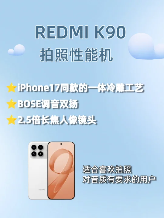 ⭐️看重拍照,尤其是长焦→ 红米K90,镜头优势明显