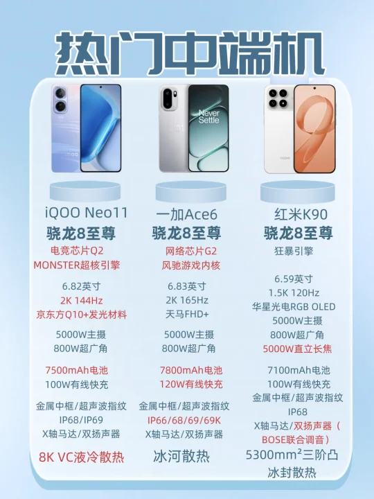 📱 iQOO Neo11:游戏神器,屏幕观感天花板 如果你对游戏体验有极致追求,选它准没错!