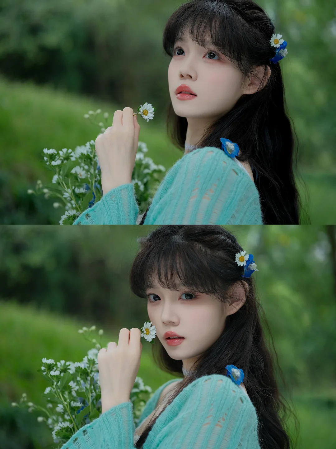 上周在彩云湖湿地公园拍的,好清新的绿色呀!喜欢~ 拍照时间:下午三点到五点 阴天拍照也一定要打反光板哦,这样才会清透~ 拍照姿势📷: 1.抱着花,把花朵放在耳朵旁边。 2.把花举起来眨眼。 3.透过前景拍人更唯美。 4.侧身坐着抬头看天或看镜头。 5.转身回头。 出镜
