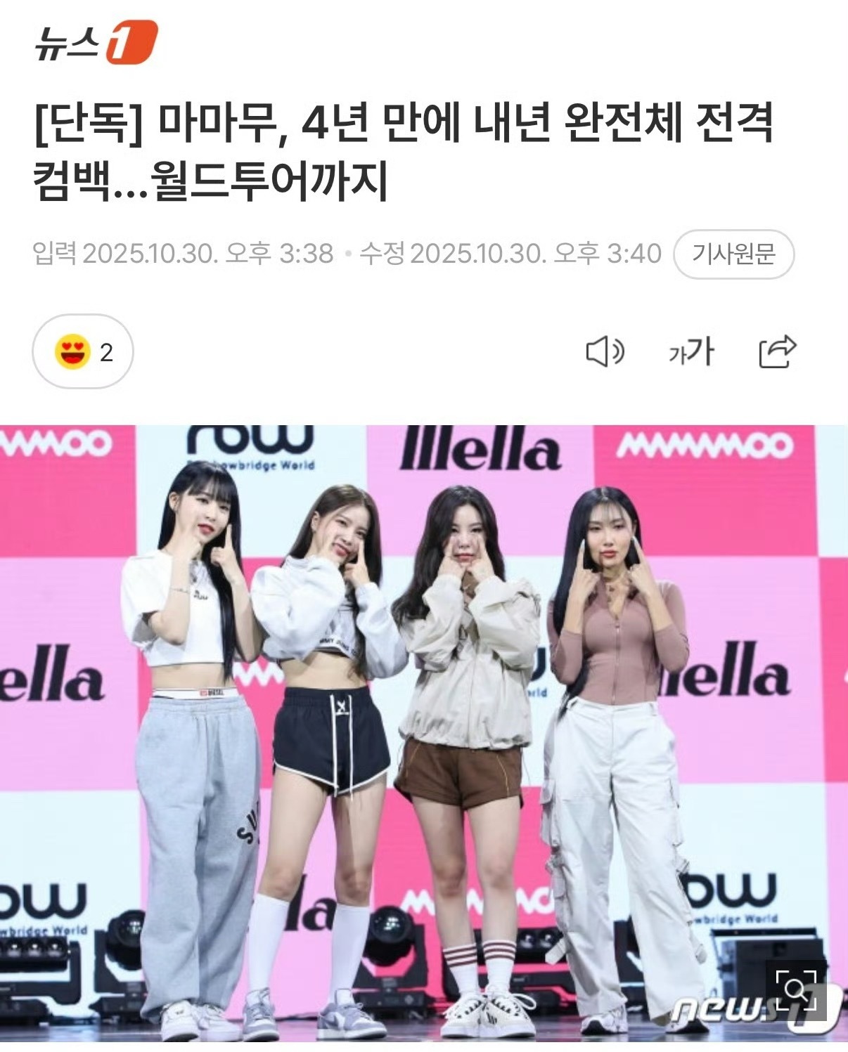 MAMAMOO将完整体回归MAMAMOO时隔4年完整体回归,将展开世界巡演