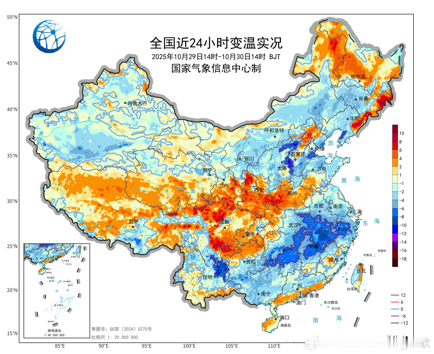 【气温】今天下午,不论是变温,还是气温分布,都呈现夹心结构。因为阴雨和冷空气影响,山西、云南部分站点降温超10℃,山西昔阳降13℃、云南东川降10.7℃,为各自省份14时降温最强站点。而在降温区之间,也有升温,出现了南北倒挂的情况。下午济南的气温比杭州、南昌、武汉、长沙、贵阳都高。而更靠南的云南、广东、海南站点,包揽了气温榜前十高。