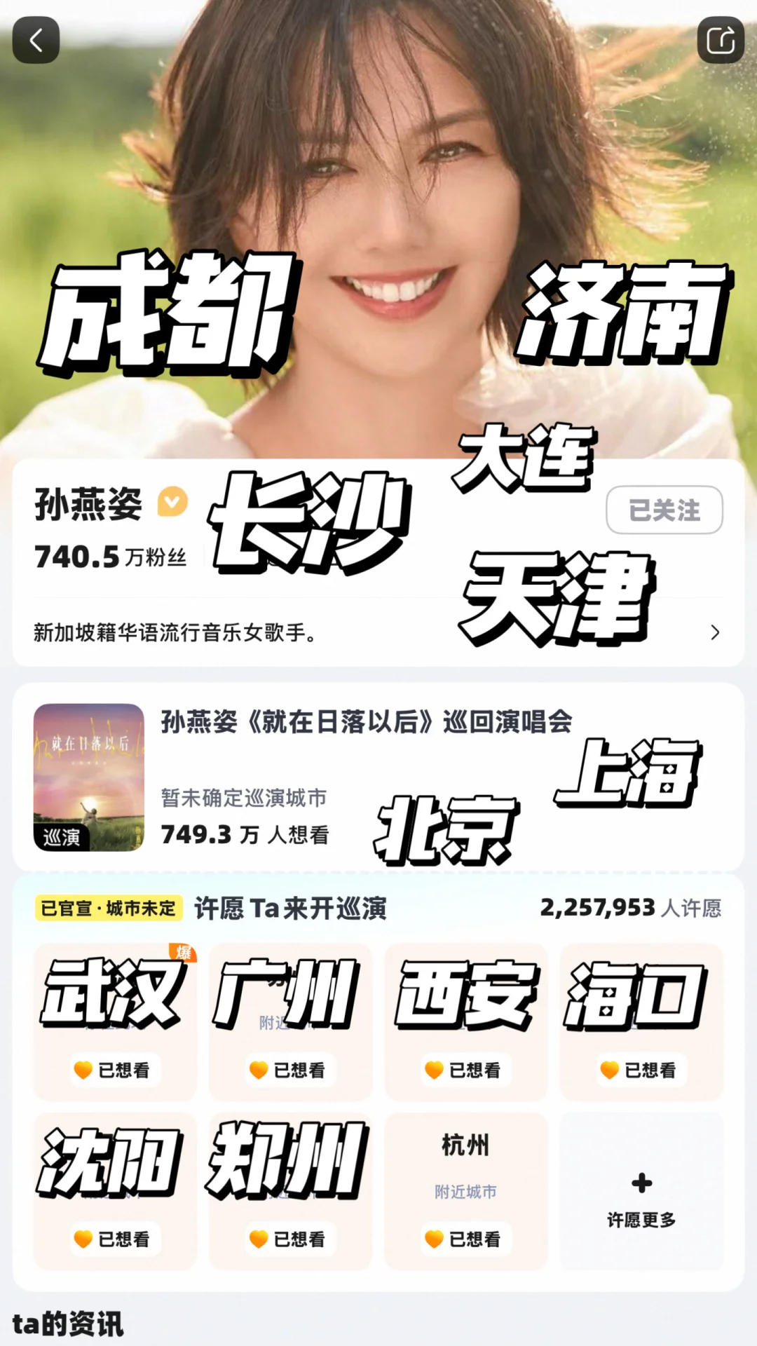 去!一起许愿吧! 25年巡演告一段落,我怀念每一个有燕姿演出的日子。不知道“日落以后”巡演结束,要等多久才能再看她的演唱会,所以格外珍惜每一次见面的机会。2026年,希望巡演能去到更多城市,让更多姿迷能亲眼见到她,亲耳听她唱歌;好好照顾自己的身体,劳逸结合,期待新的作品[萌萌哒R] 燕姿,你的音乐之路,我们姿迷会一直陪着你走下去。不管未来多久,只要你还唱,我们就还在。 💗喜欢孙燕姿这件事,非常好!!!