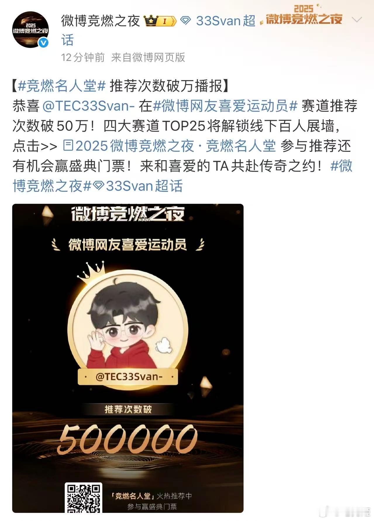 恭喜33成为第一个推荐次数突破50万的电竞选手!33首位破50万推荐电竞选手