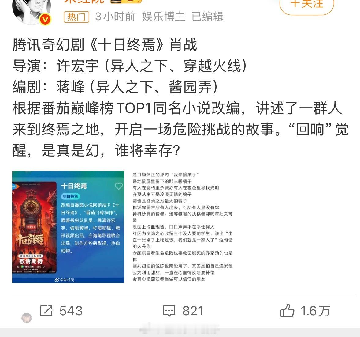 十日终焉 肖战十日终焉又传到肖战了[傻眼]你期待他演吗