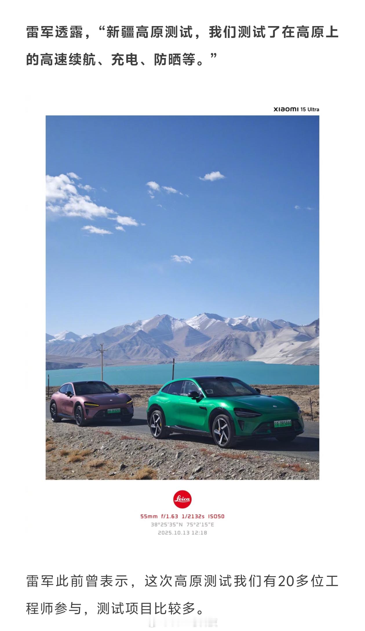 雷军晒新疆亲测小米YU7照片 小米YU7不是已经量产了吗,还在测试???