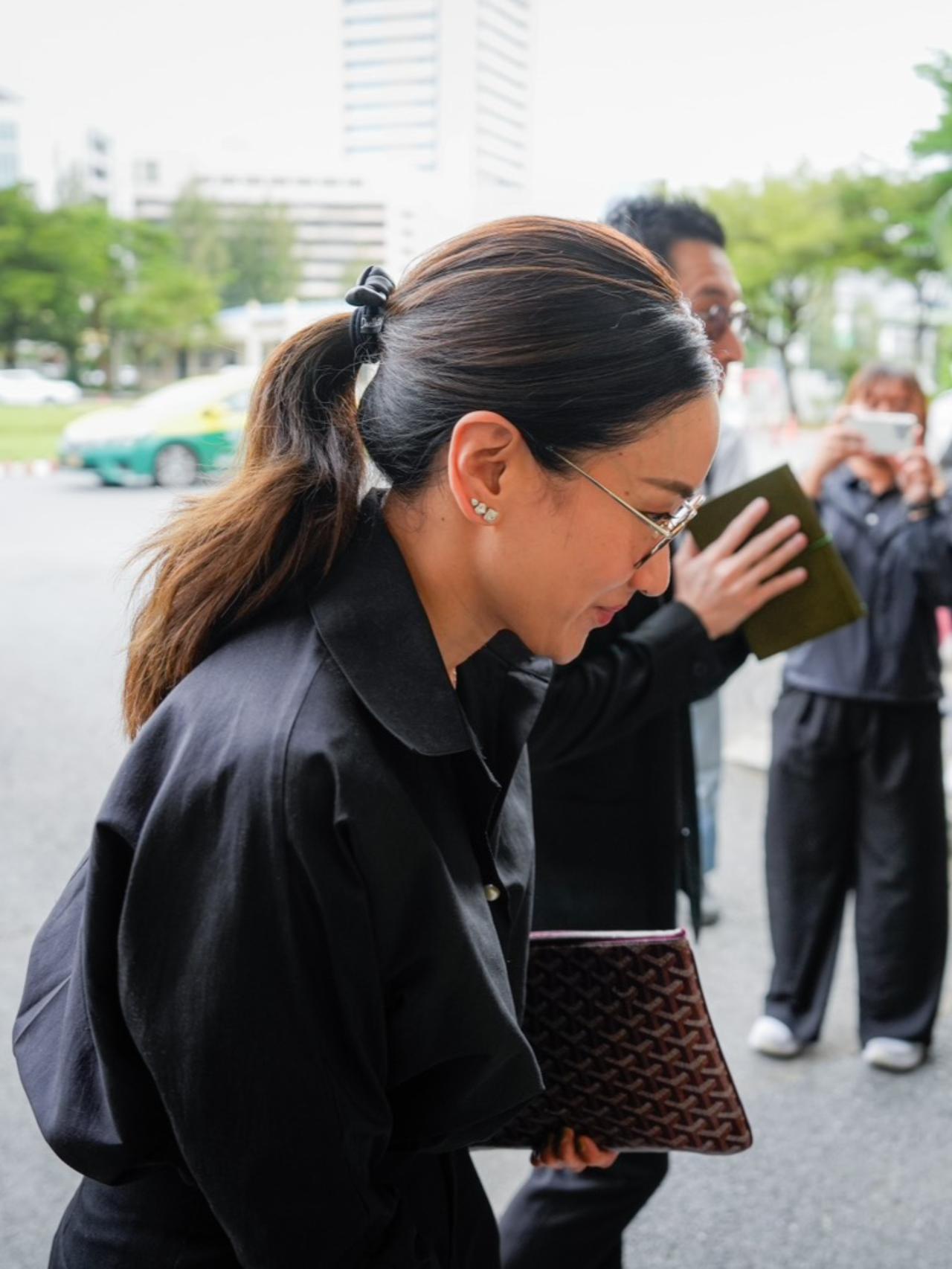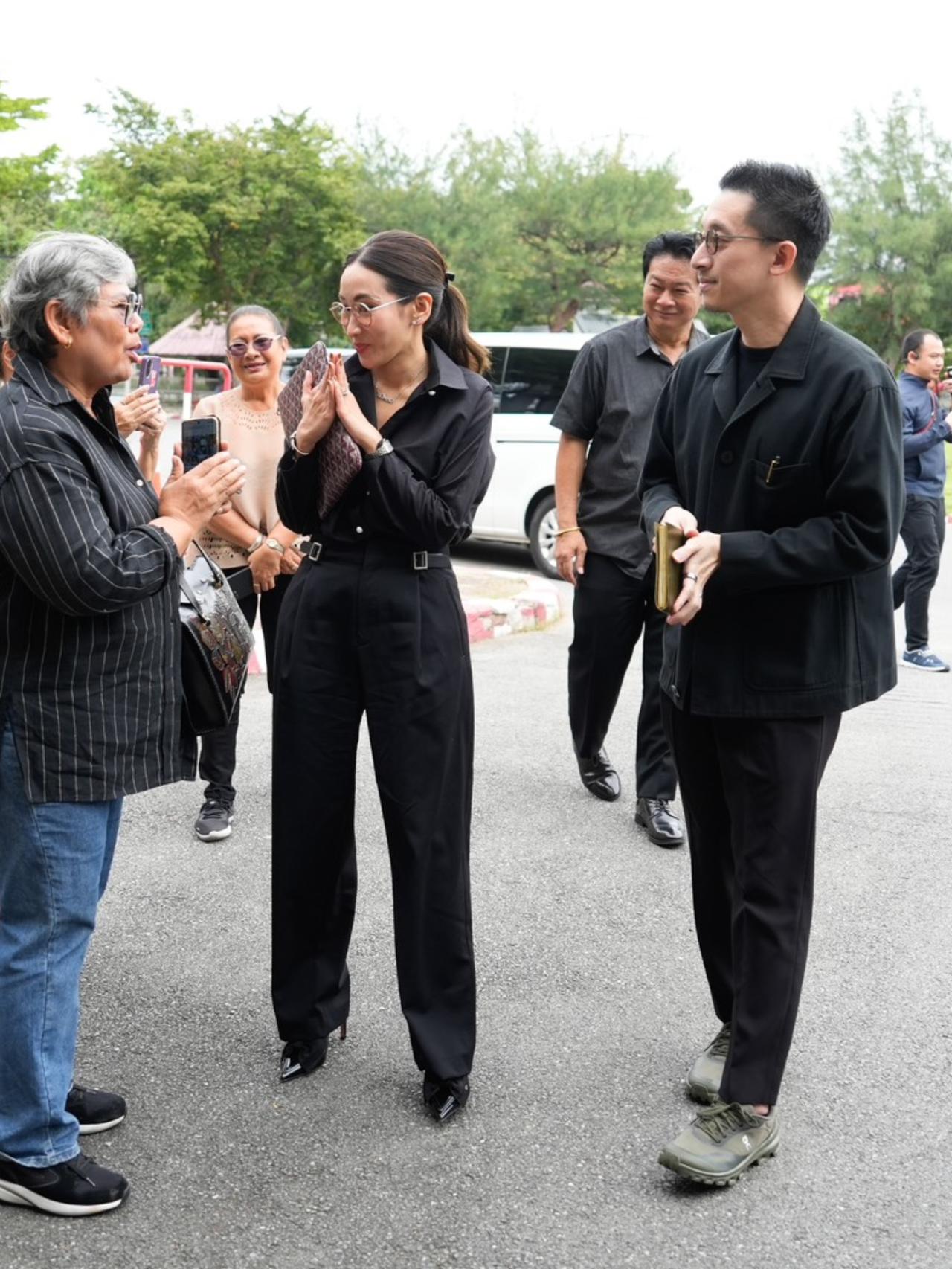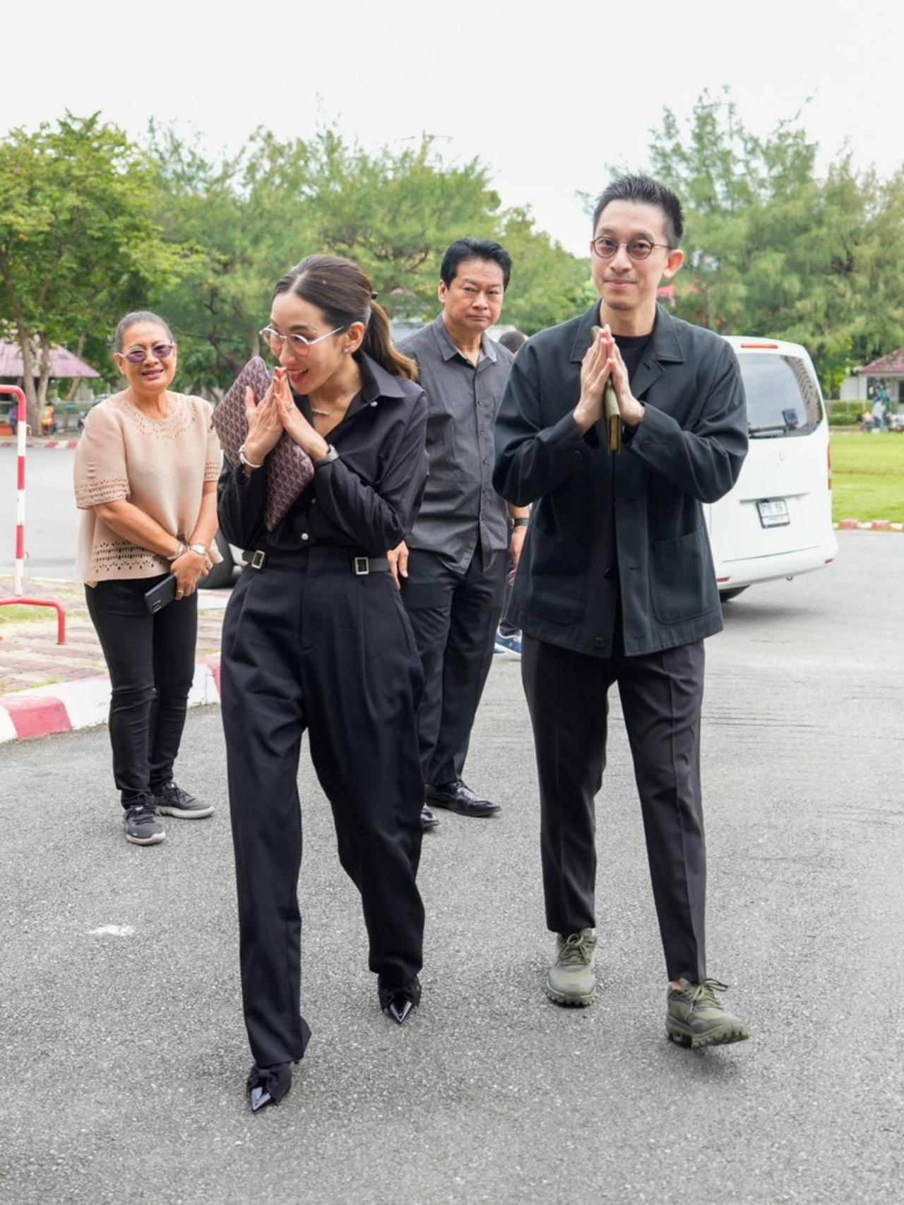 萍通塔身穿黑丧服亮相,帅气丈夫随行 2025年10月30日,萍通塔·西那瓦·库纳空翁与丈夫纳塔蓬·库纳空翁,一同前往空普雷姆中央监狱,探望前总理他信·西那瓦。抵达监狱外,二人向聚集的支持者鞠躬致意,尽显亲和。之后,他们进入监狱探望他信,这场备受关注的探访,预计将持续约一个小时。