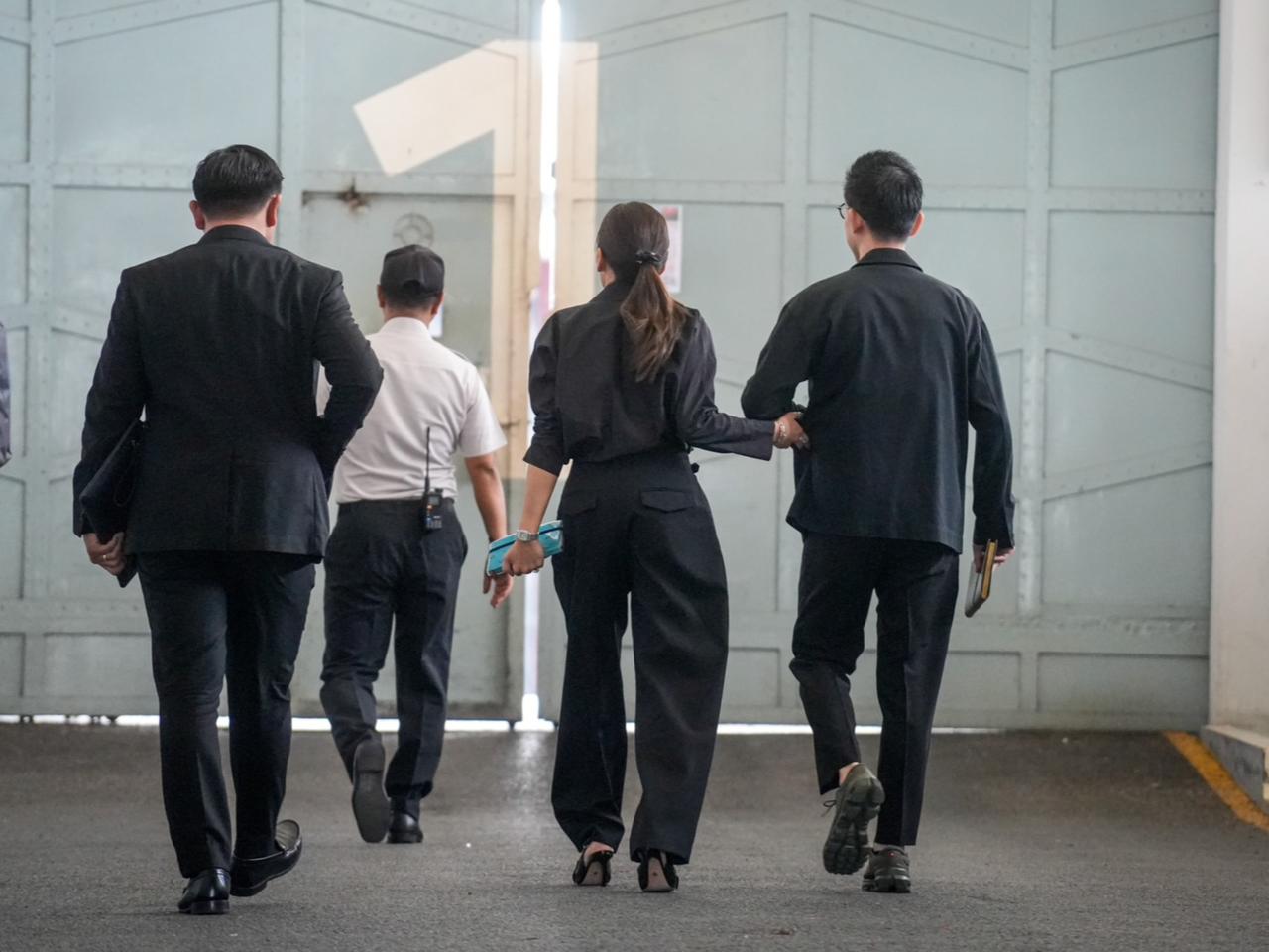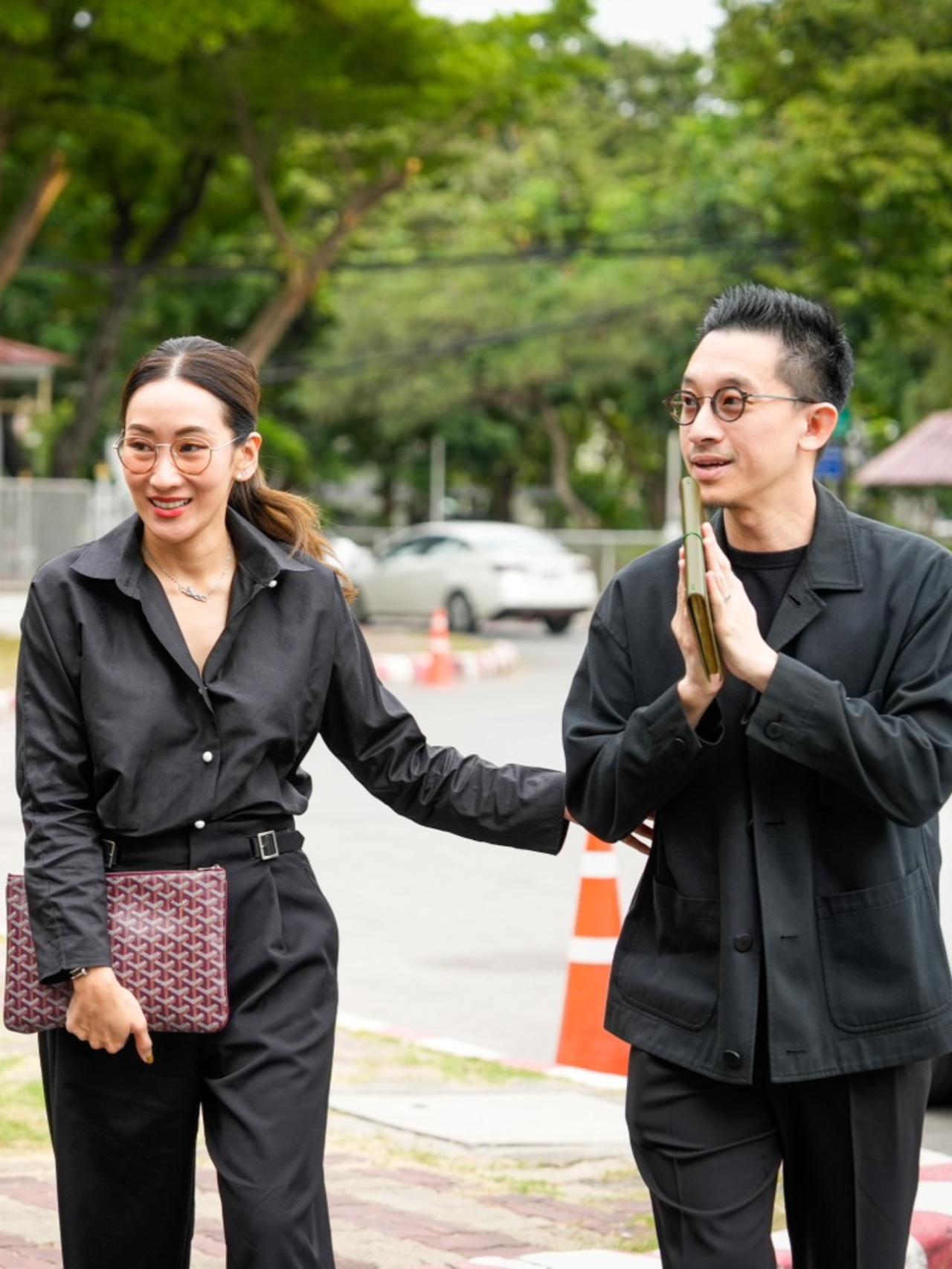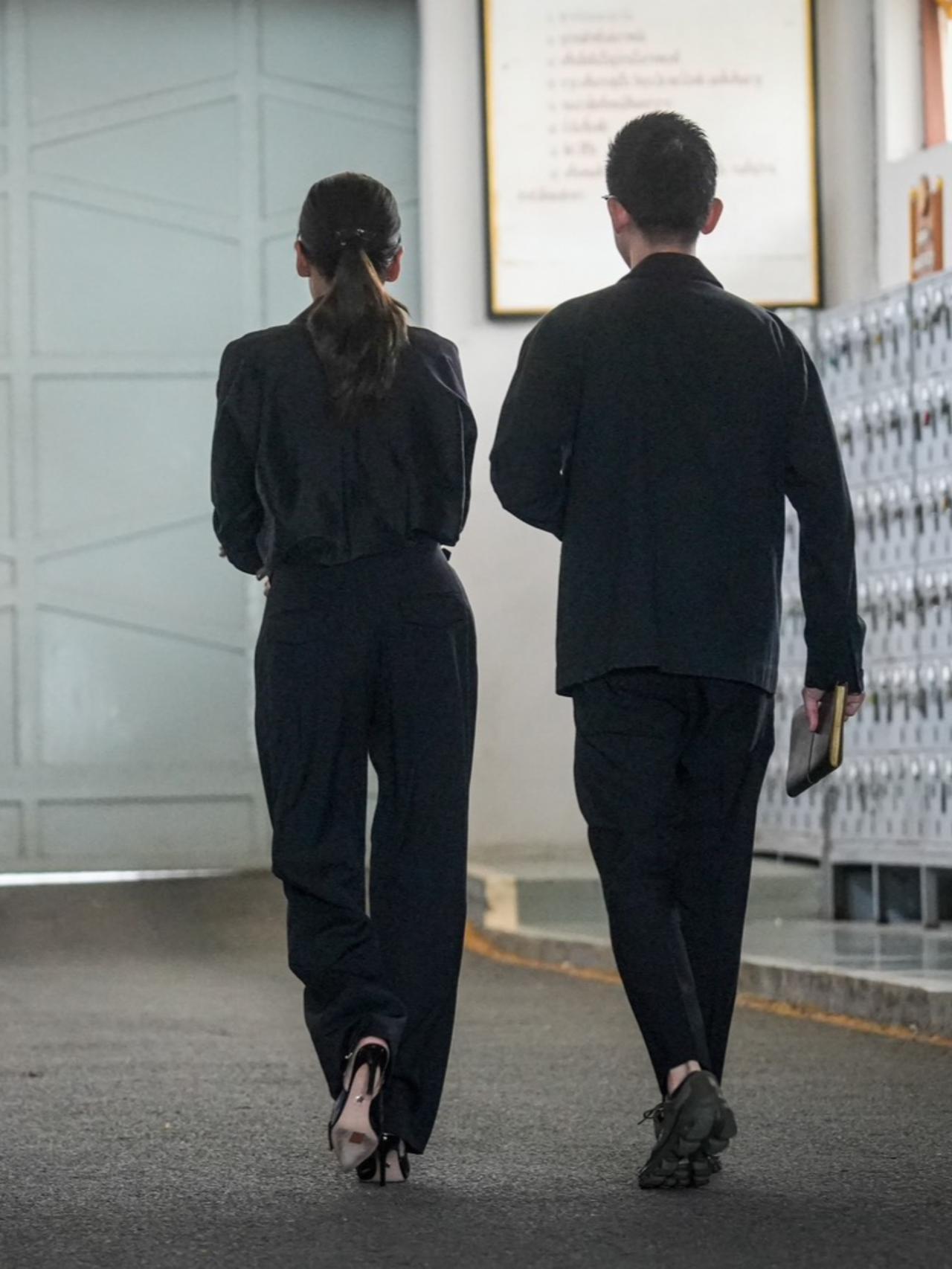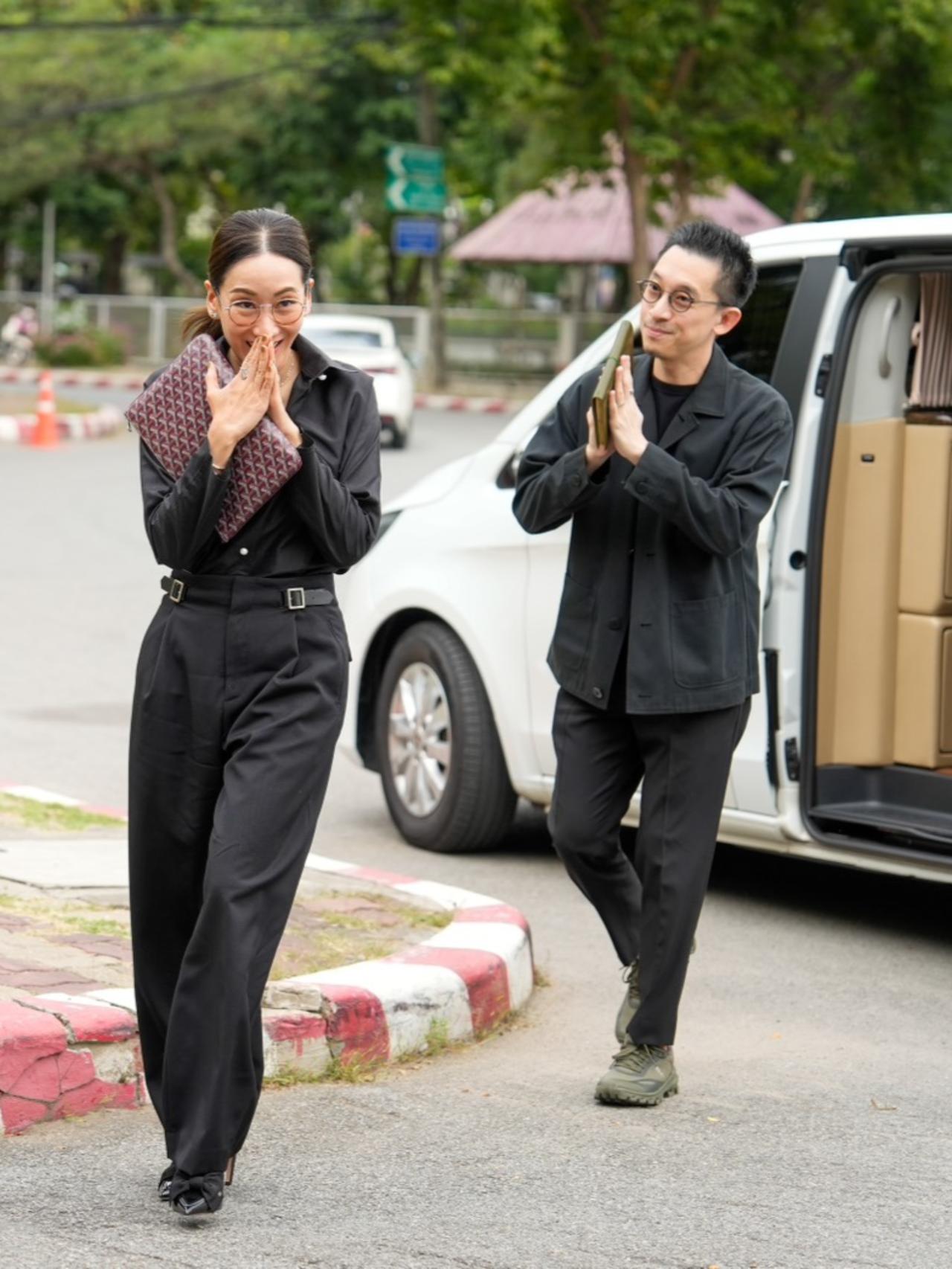 萍通塔身穿黑丧服亮相,帅气丈夫随行 2025年10月30日,萍通塔·西那瓦·库纳空翁与丈夫纳塔蓬·库纳空翁,一同前往空普雷姆中央监狱,探望前总理他信·西那瓦。抵达监狱外,二人向聚集的支持者鞠躬致意,尽显亲和。之后,他们进入监狱探望他信,这场备受关注的探访,预计将持续约一个小时。