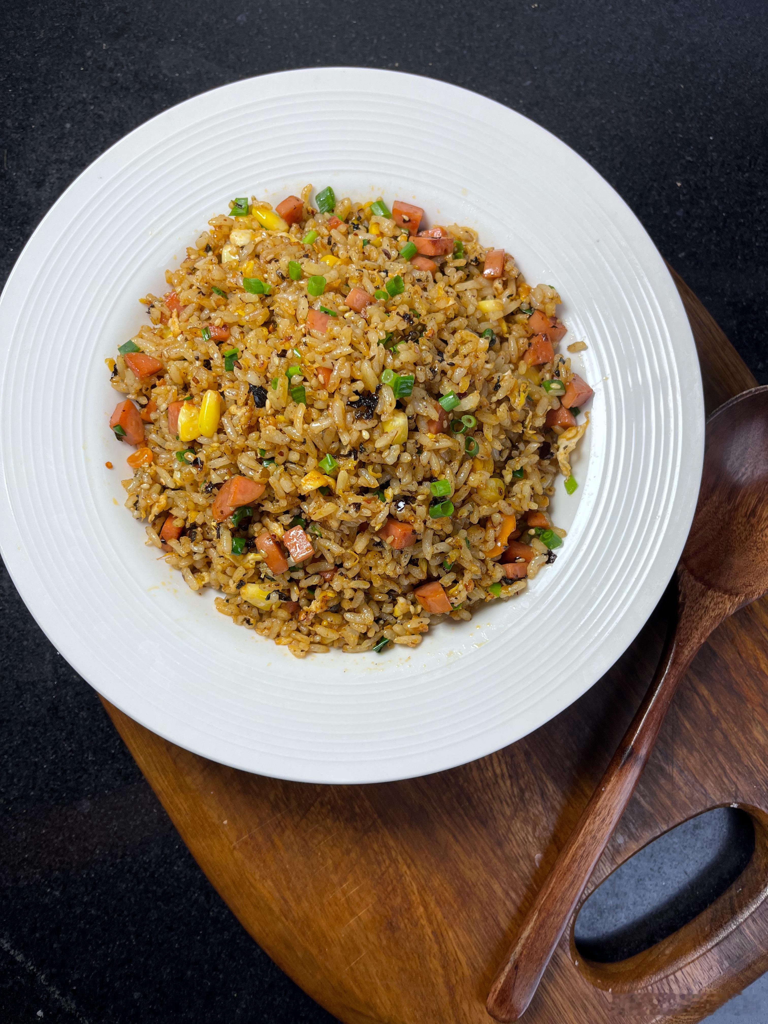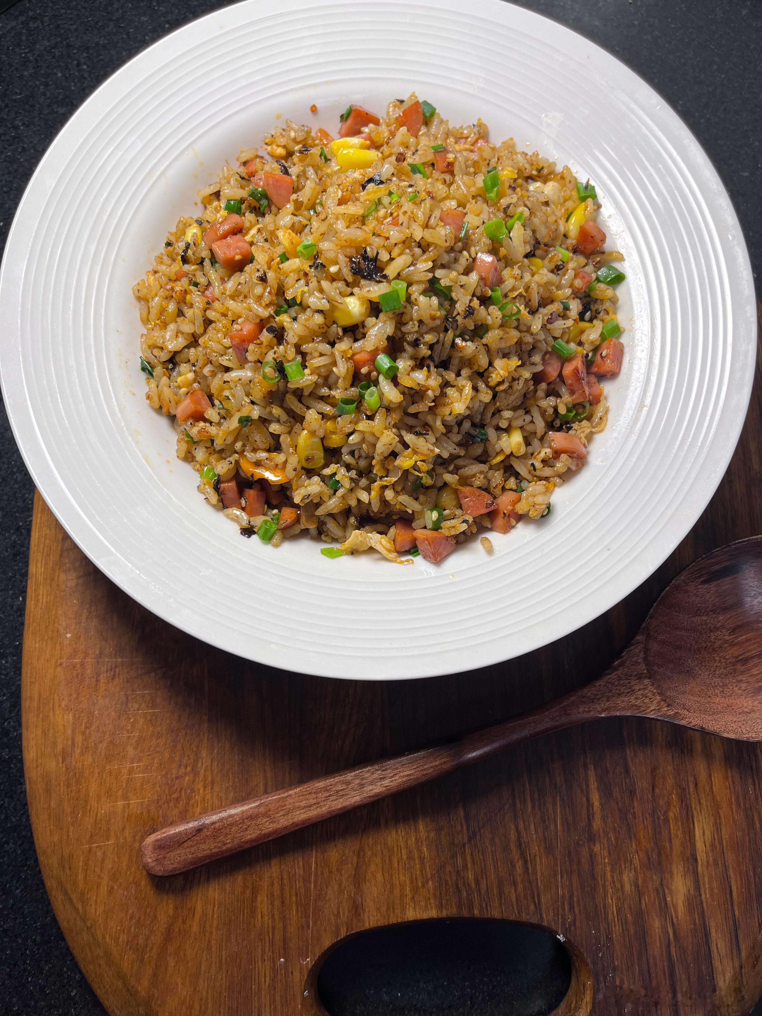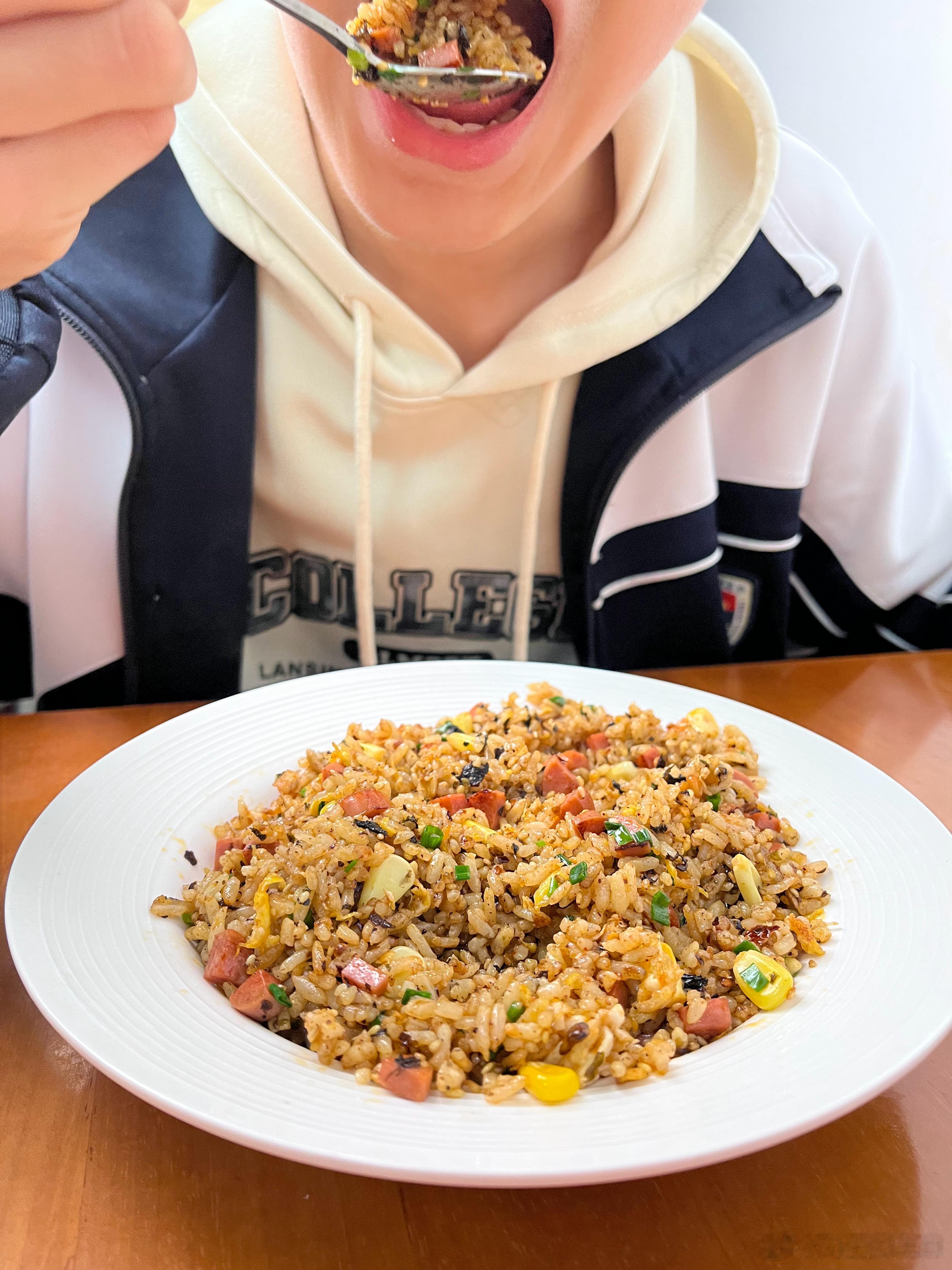 相信每个人心里都有一碗最好吃的炒饭。我喜欢简单一点,就玉米火腿肠。我家老大就不一样,他偏好重口味,什么辣条炒饭,辣椒油炒饭。