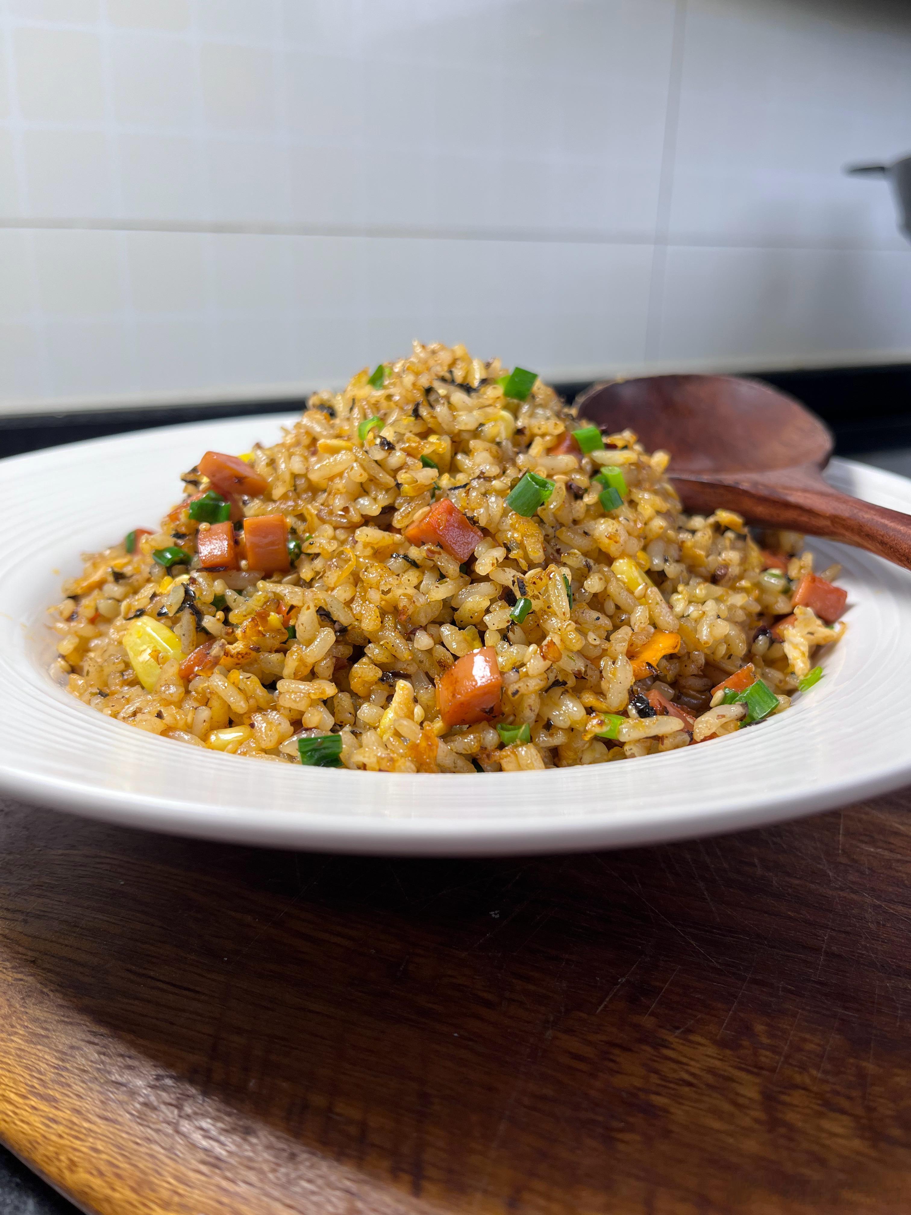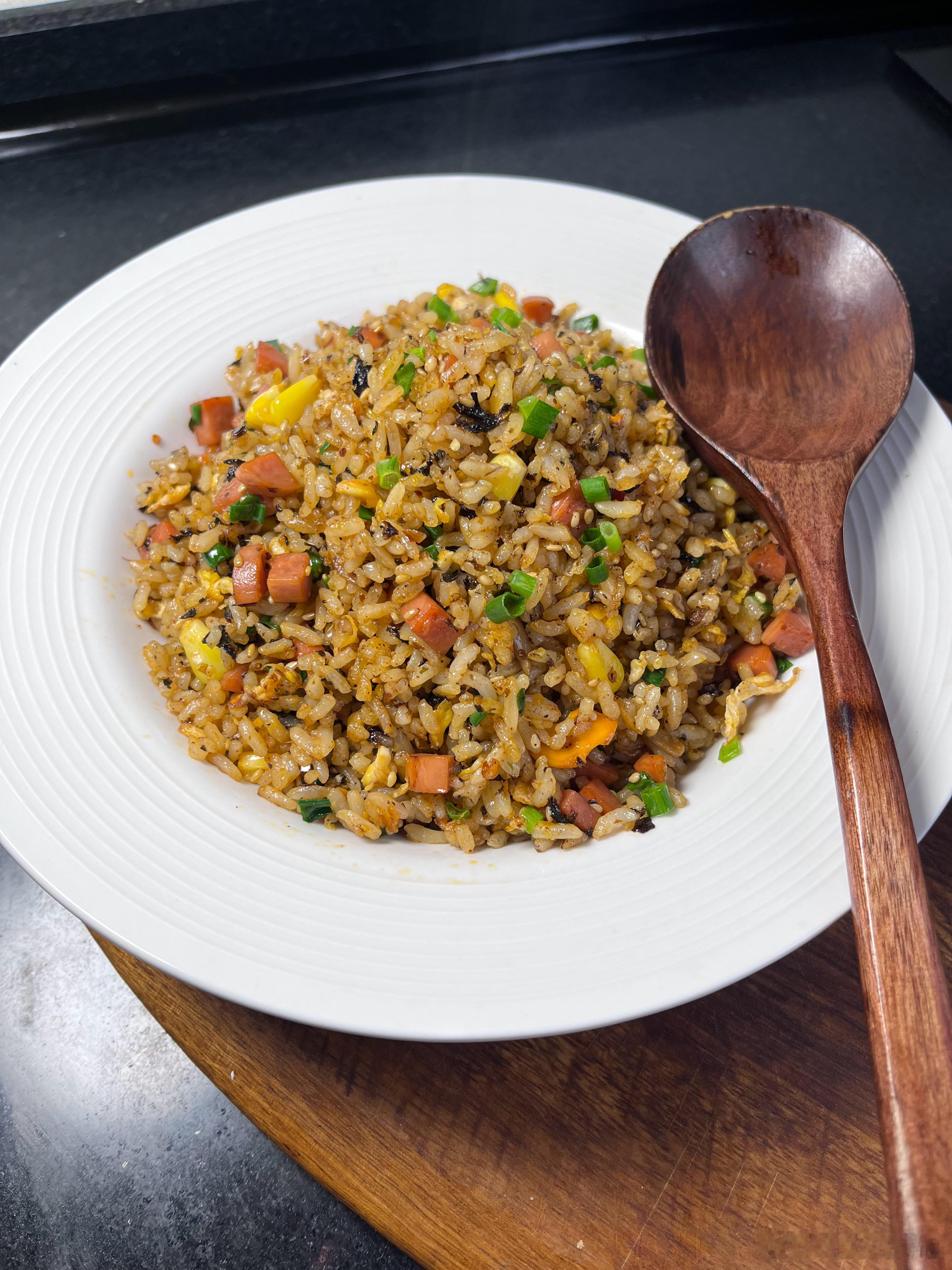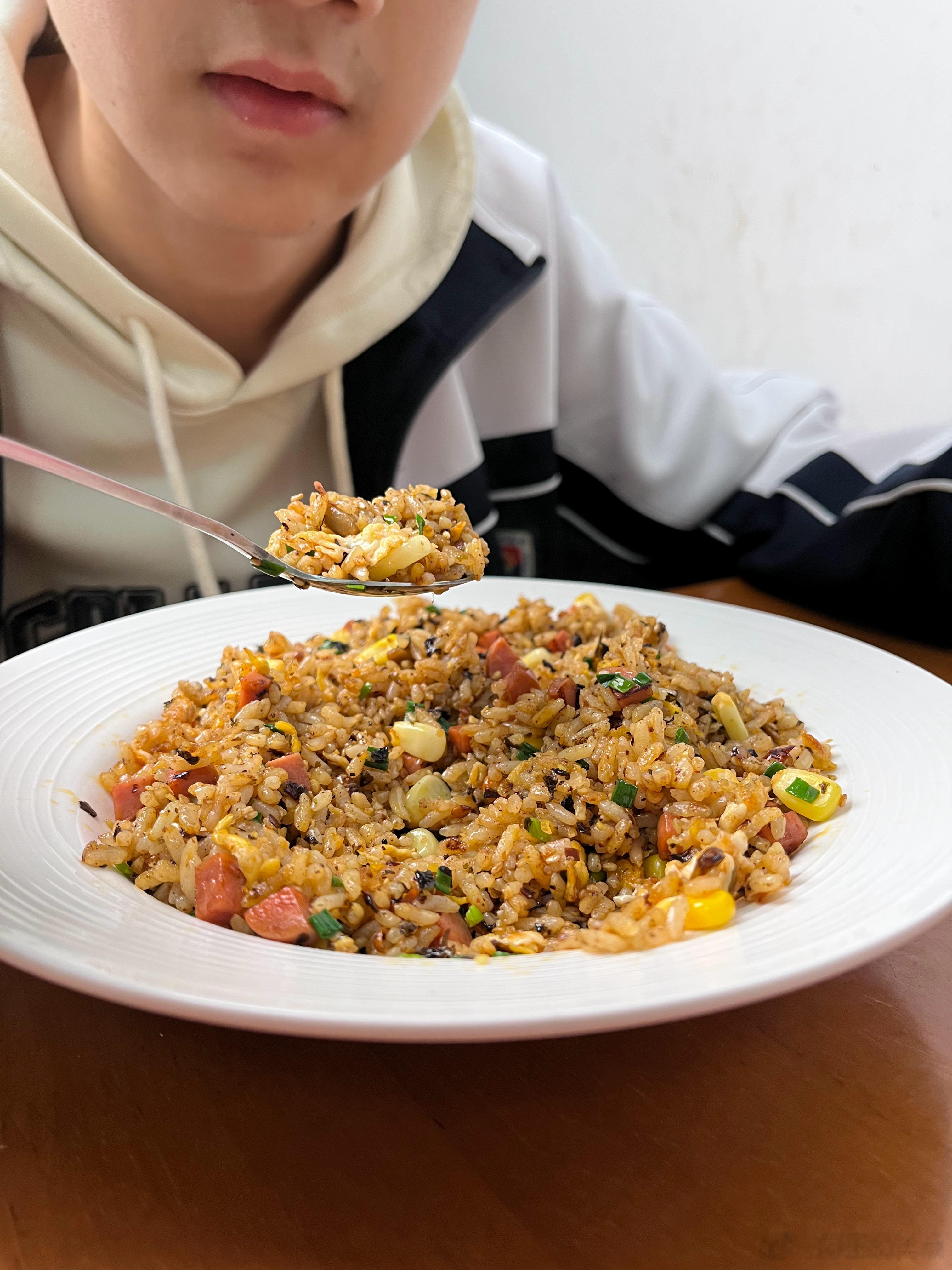 相信每个人心里都有一碗最好吃的炒饭。我喜欢简单一点,就玉米火腿肠。我家老大就不一样,他偏好重口味,什么辣条炒饭,辣椒油炒饭。