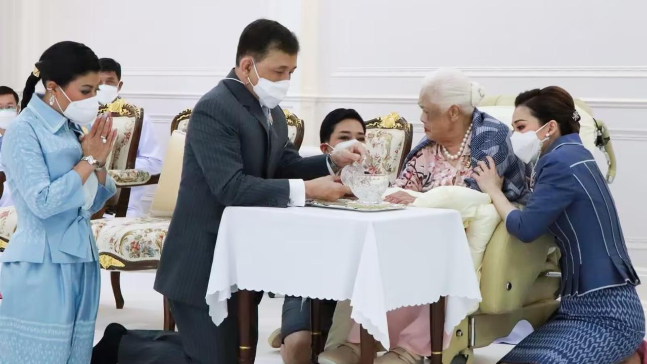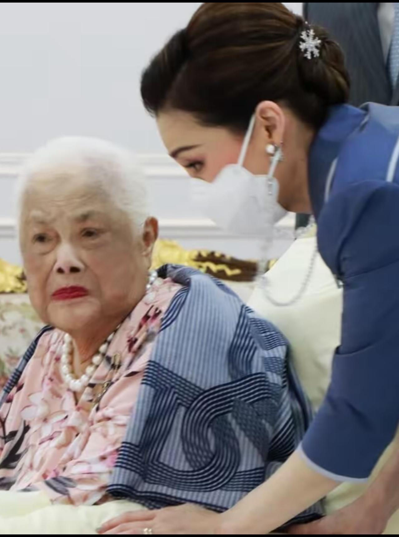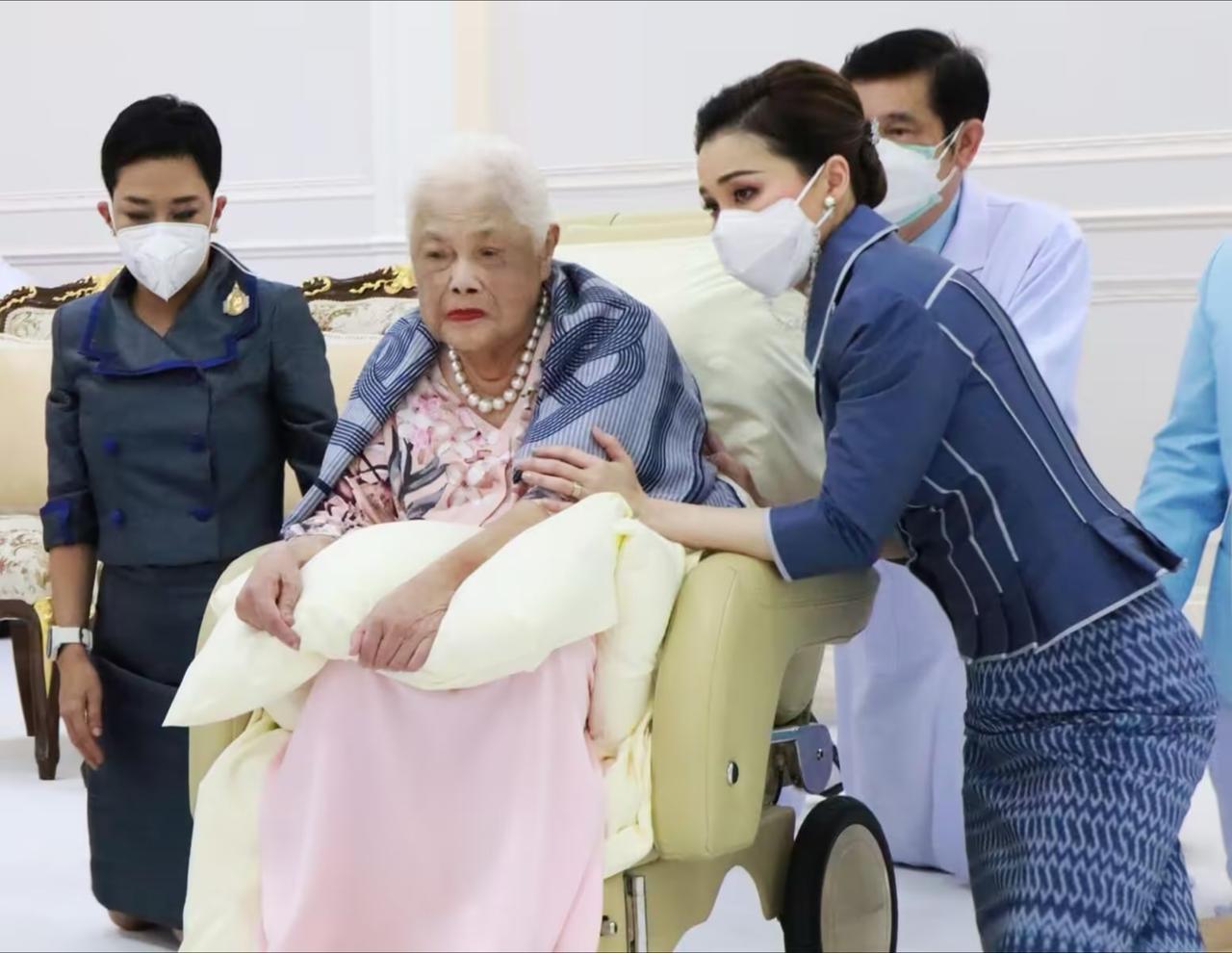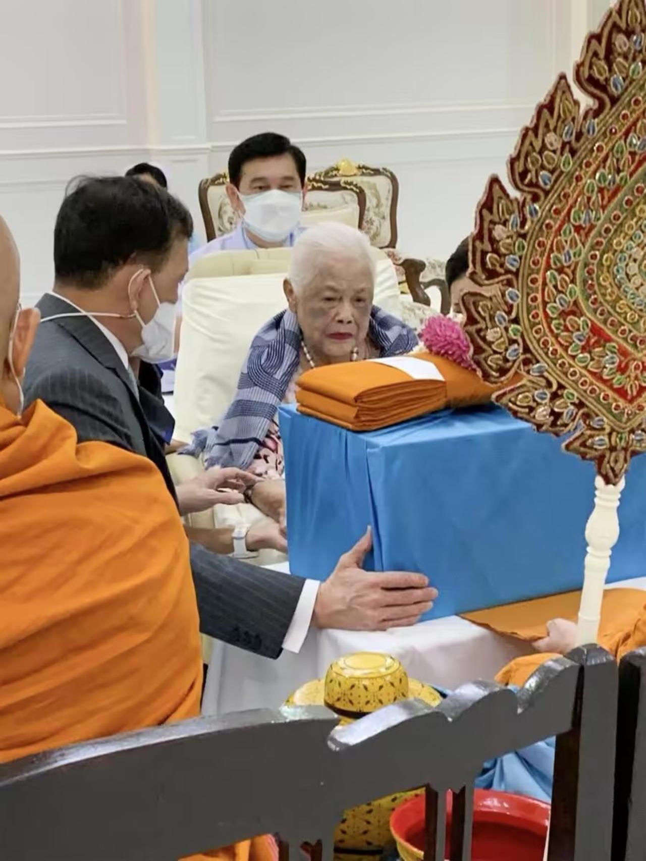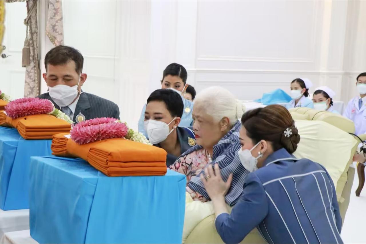 3年前苏提达为婆婆贺寿,两位王后罕见同框 2022年8月12日下午,一场意义非凡的私人功德仪式,在朱拉隆功医院泰国红十字会,大楼29楼接待室温馨举行。诗丽吉王太后陛下迎来九十岁寿辰,国王陛下与王后陛下一同出席,与王太后共度这特别时刻,现场氛围庄重又温馨。