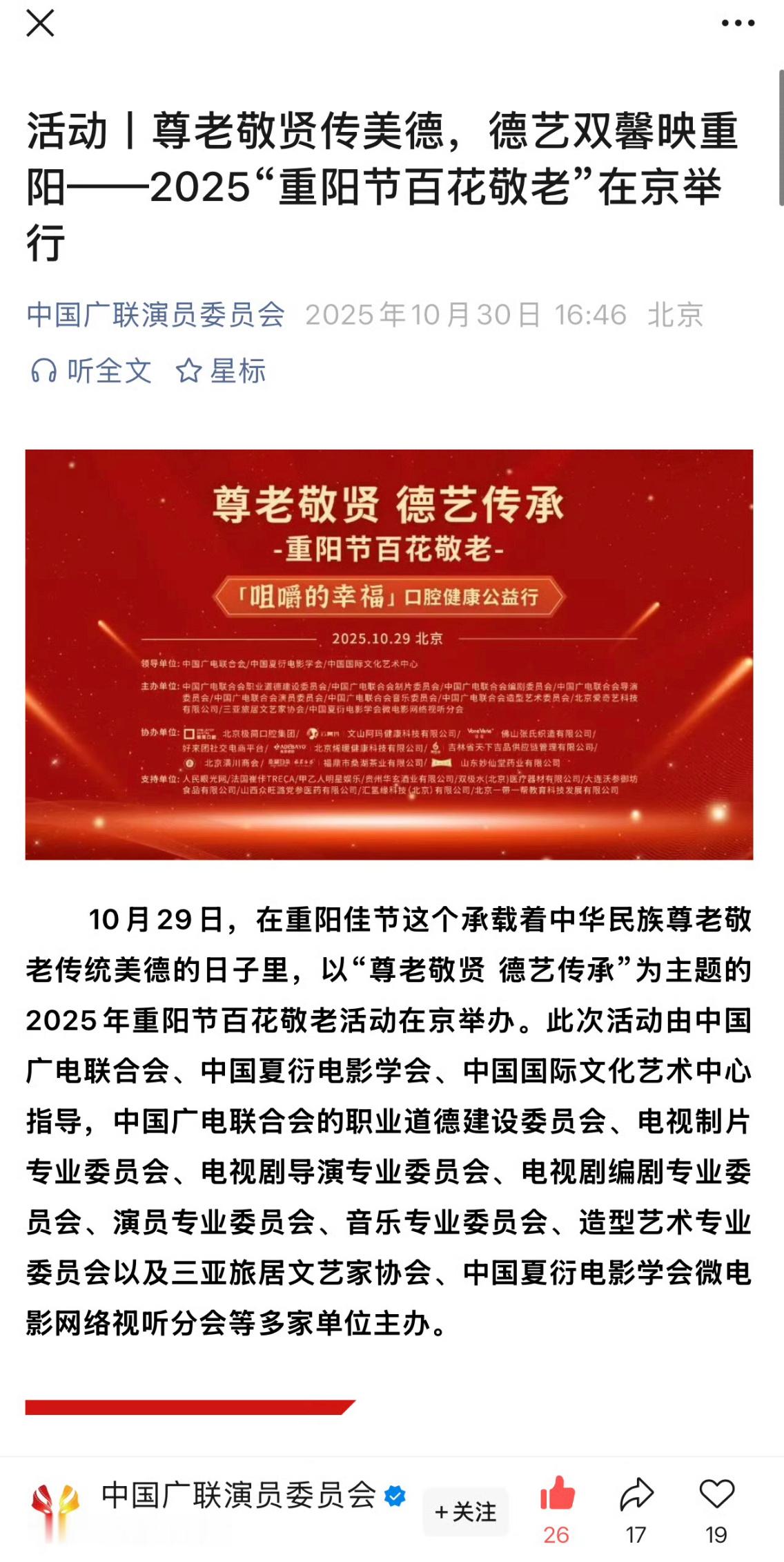 中国广联演员委员会发布是由广电等联合会承办的项目