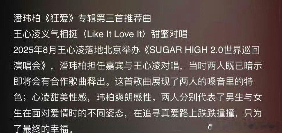 潘玮柏王心凌合作 谁的DNA动了!潘玮柏新专收录与王心凌合作曲《Like It Love It》,演唱会邀歌后终兑现,甜歌+完美视听,难道是带舞蹈的MV?期待值拉满~