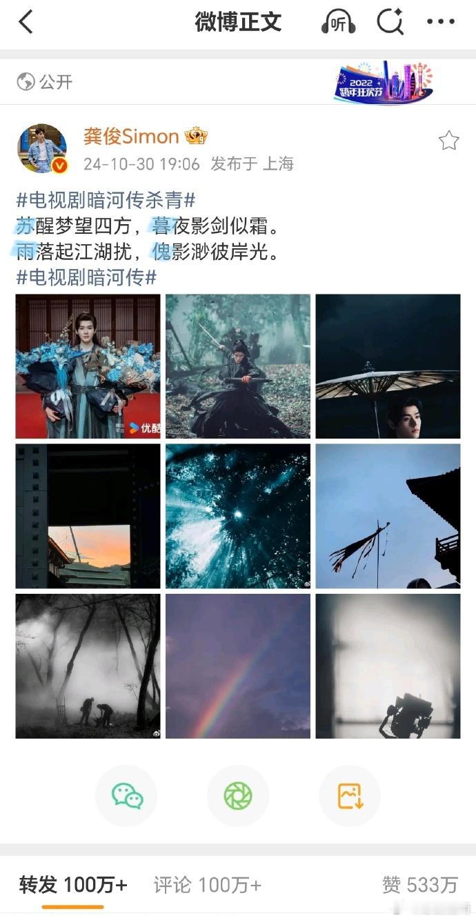 龚俊去年今日杀青藏头诗 这大概是最浪漫的剧宣方式,龚俊用藏头诗为苏暮雨写下前传,让傀大人的登场充满仪式感,面具造型与诗句呼应,既保留神秘又展现惊艳,这样的角色塑造确实值得细细品味