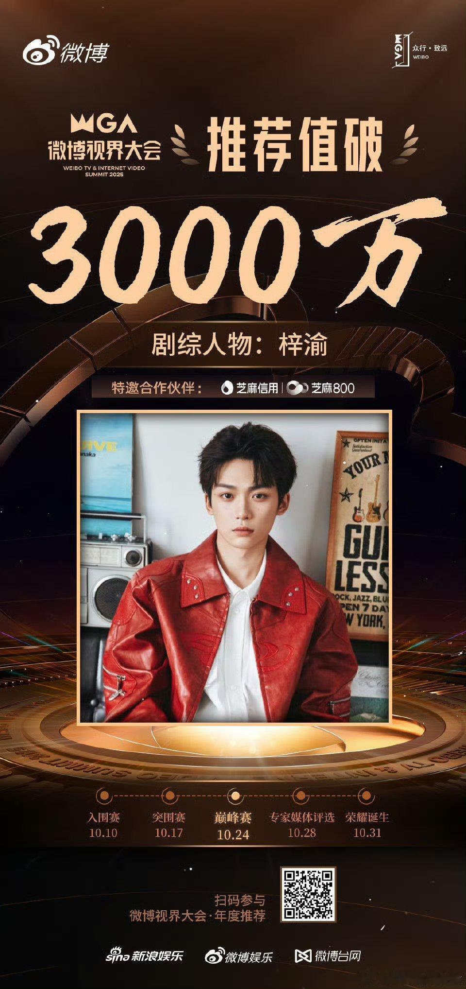 梓渝视界大会剧综人物断层第一梓渝推荐值3000多万 谁不为梓渝的断层第一疯狂心动!视界大会3000多万推荐值直接拉开差距,从投票开始就一路领跑,不管是剧综相关的讨论度还是粉丝的凝聚力都超顶,这“断层”成绩就是他高人气的最好勋章,太耀眼了! ​​​