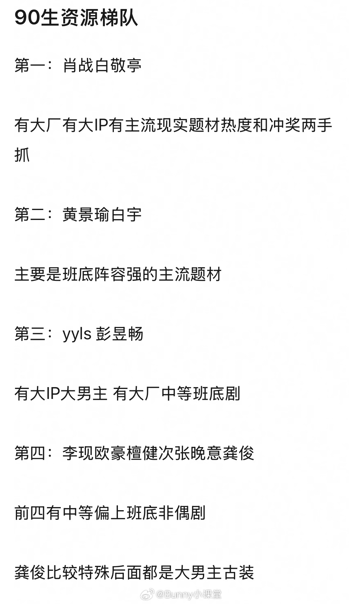 网友总结的90生资源梯队,肖战、白敬亭位列第一梯队[哆啦A梦吃惊]