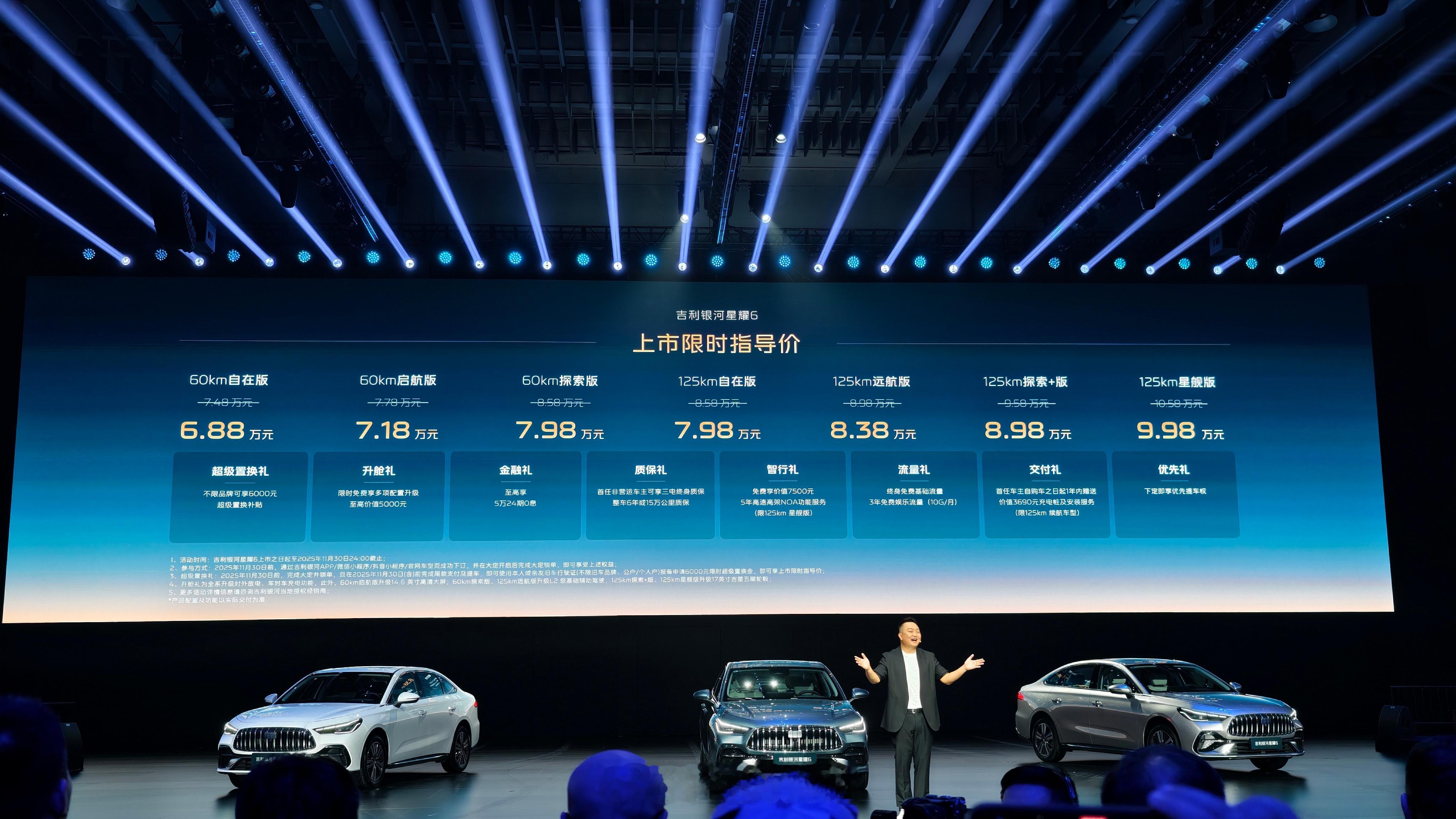 起售只要6.88万的吉利银河星耀6,确实有点不讲武德。一般我们看到的家用轿车都要做取舍,但星耀6不是这样。颜值特别好看,明显比竞争对手的车型要更有辨识度,更能抓住年轻人的心。其次空间巨大,2756mm的轴距只是表面参数,深层的体验是后排乘坐3名山东大汉都不会憋屈。同时后备箱里还能再塞进去6个行李箱。面子有了,里子也不会差。星耀6能耗做到了2.8L/100km,用PHEV的构架硬刚EV的用车成本。除此之外,15000km的保养周期也是独一份的存在。如果近期打算买一台实用省心的家用轿车,你会考虑星耀6的哪一款?吉利银河星耀6限时指导价6.88万元起新一代国民电混家轿