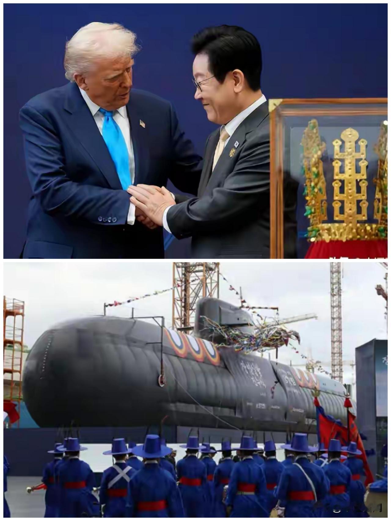 特朗普又一次在亚洲“出手”,这次,他选择了在韩国“放大招”。 特朗普同意韩国建造核潜艇,因为韩国贡献了3550亿美元,特朗普有钱赚还能牵制朝鲜,韩国送特朗普皇冠也是别有用心,一个个都以为人傻,我看老特最精了,钱赚了,目的也达到了。